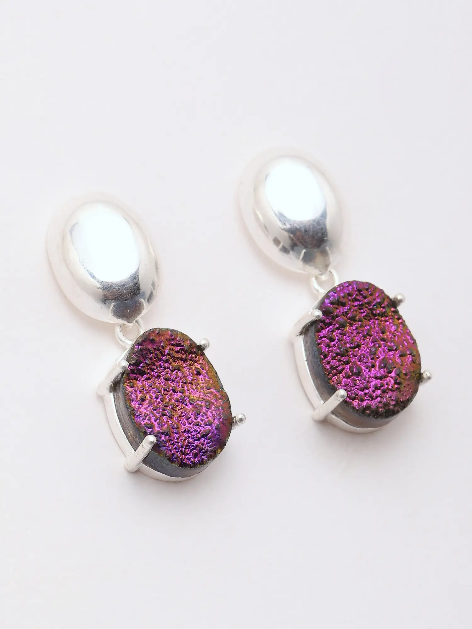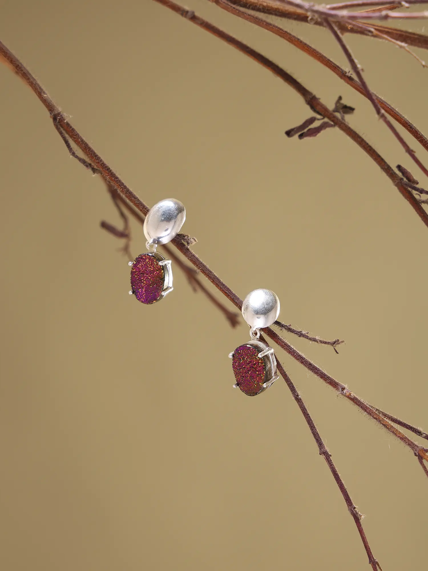 Lord Ganesha Oxidized Silver Earrings with Drop Gemstone