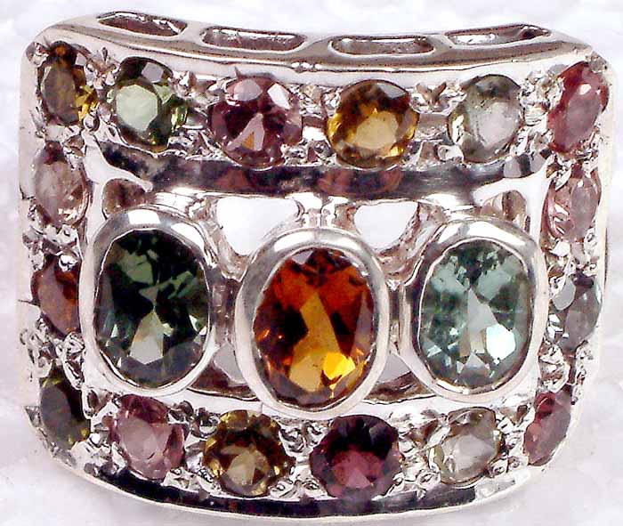 Faceted Tourmaline Ring (Mixed Hues) | Indian Gemstone Jewelry