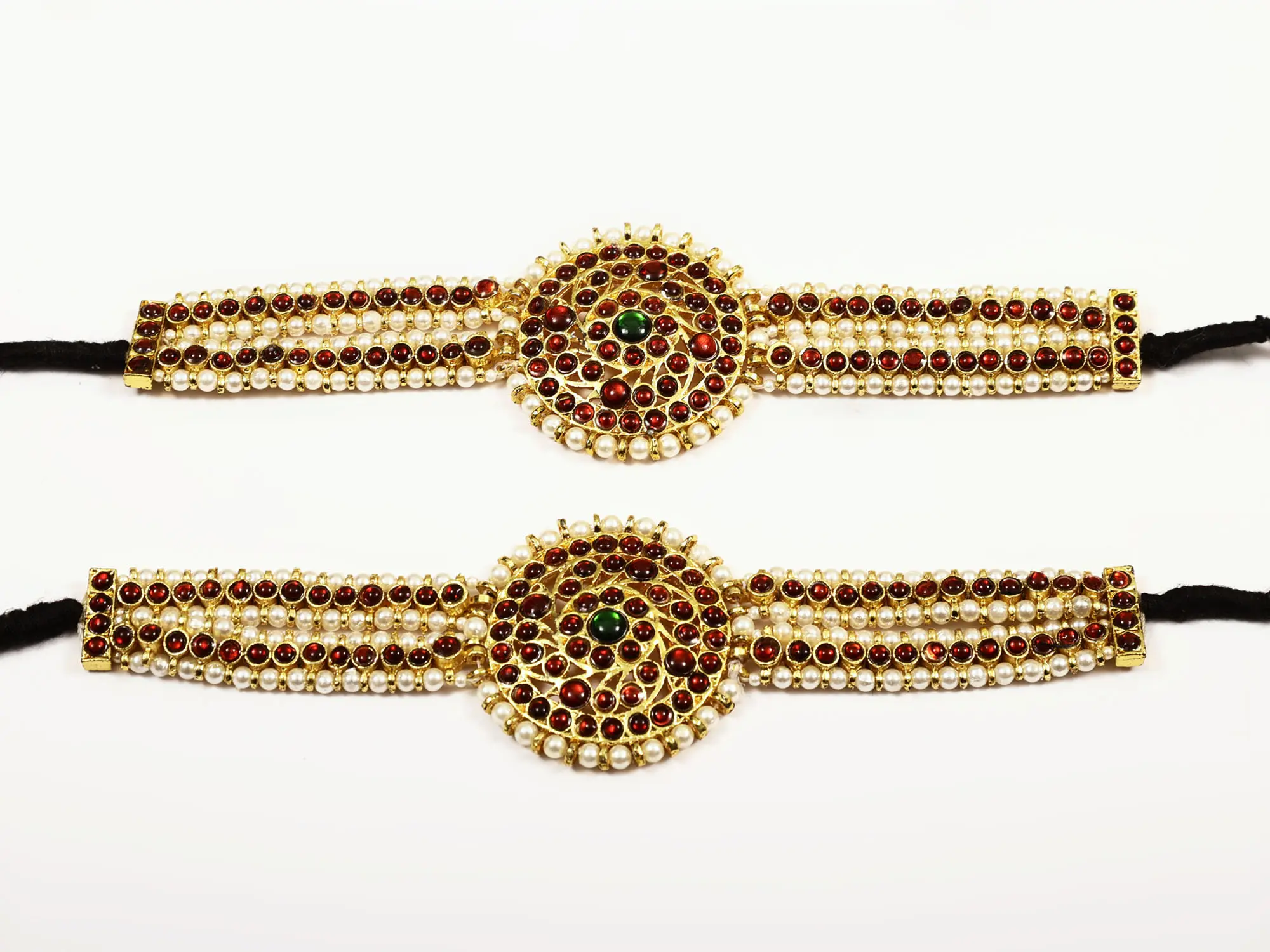 Traditional Armlet with Red & Green Stones and Pearls