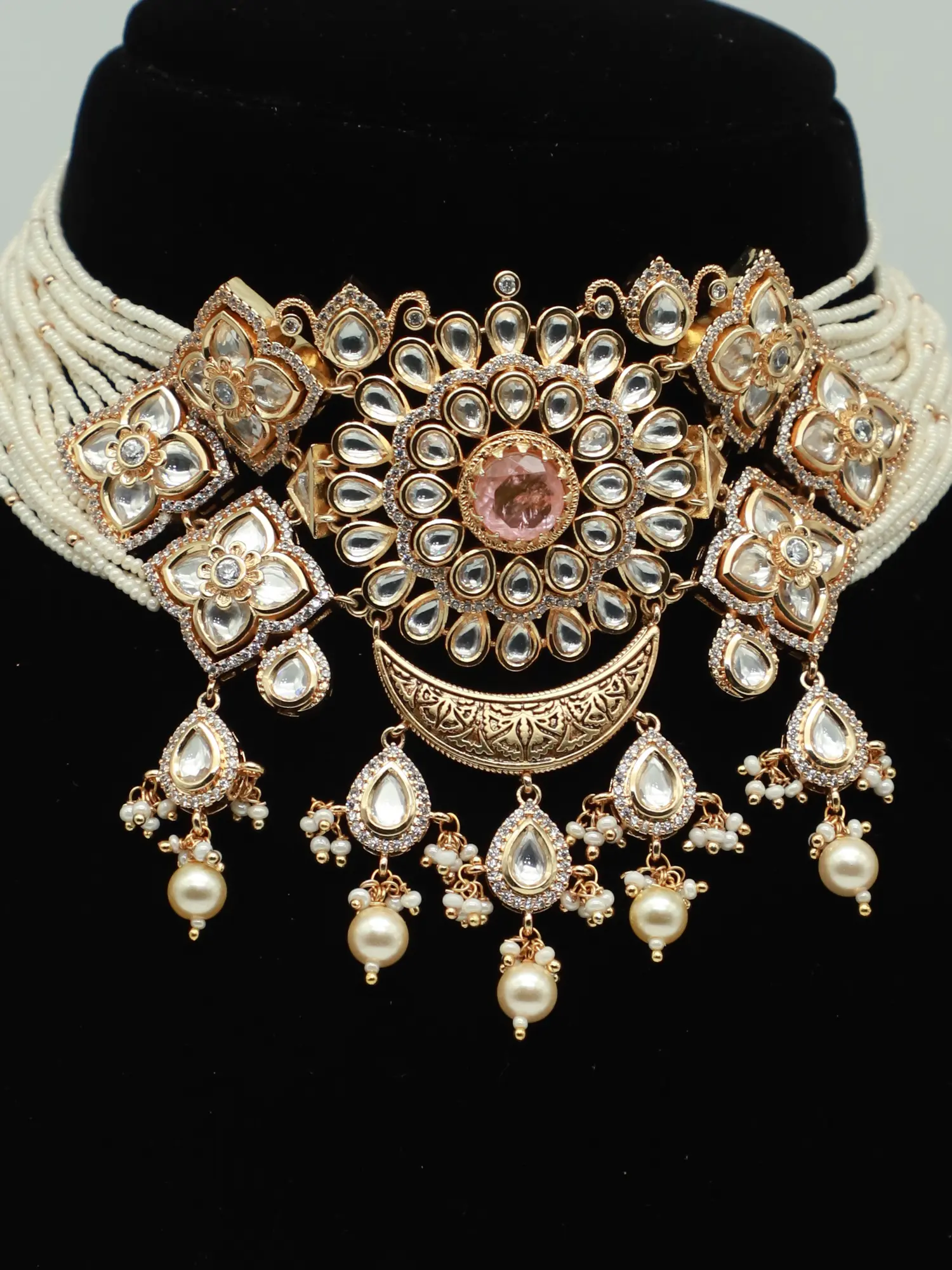 This choker set is designed to complement a wide range of styles and occasions. Whether you're dressing up for a special event, celebrating a festive occasion, or simply adding a touch of glamour to your everyday look, this set is sure to impress. Its classic design and versatile color palette make it easy to pair with a variety of outfits, from traditional ethnic wear to modern contemporary styles. Wear it with a saree, lehenga, salwar kameez, or even a simple dress to instantly elevate your ensemble and make a lasting impression.