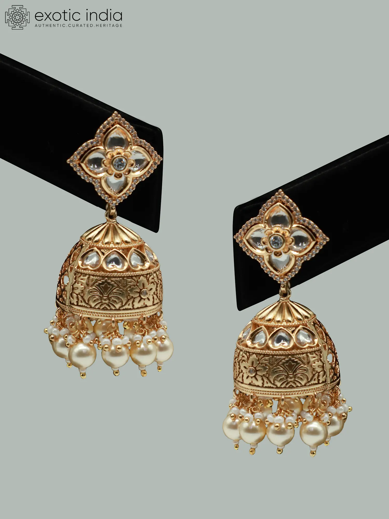 Crafted from brass, this jewelry set offers a durable and long-lasting foundation. The gold-toned finish provides a rich, luxurious sheen that mimics the look of precious metals. The carefully selected pearls add a touch of opulence and sophistication. The stones are expertly set to ensure maximum brilliance and sparkle, enhancing the overall visual appeal. The combination of materials and finishes creates a harmonious blend of elegance and durability, making this set a treasured addition to any jewelry collection.
