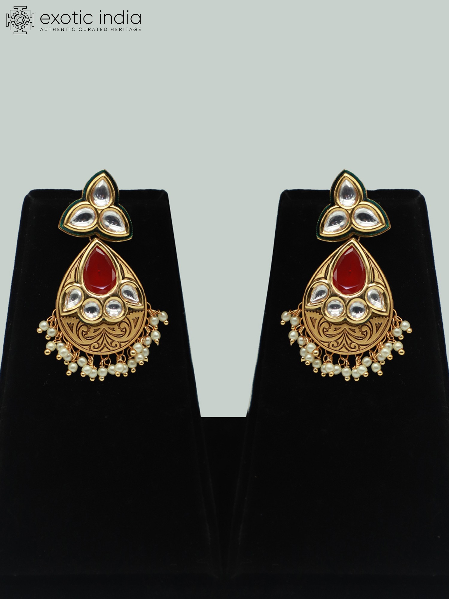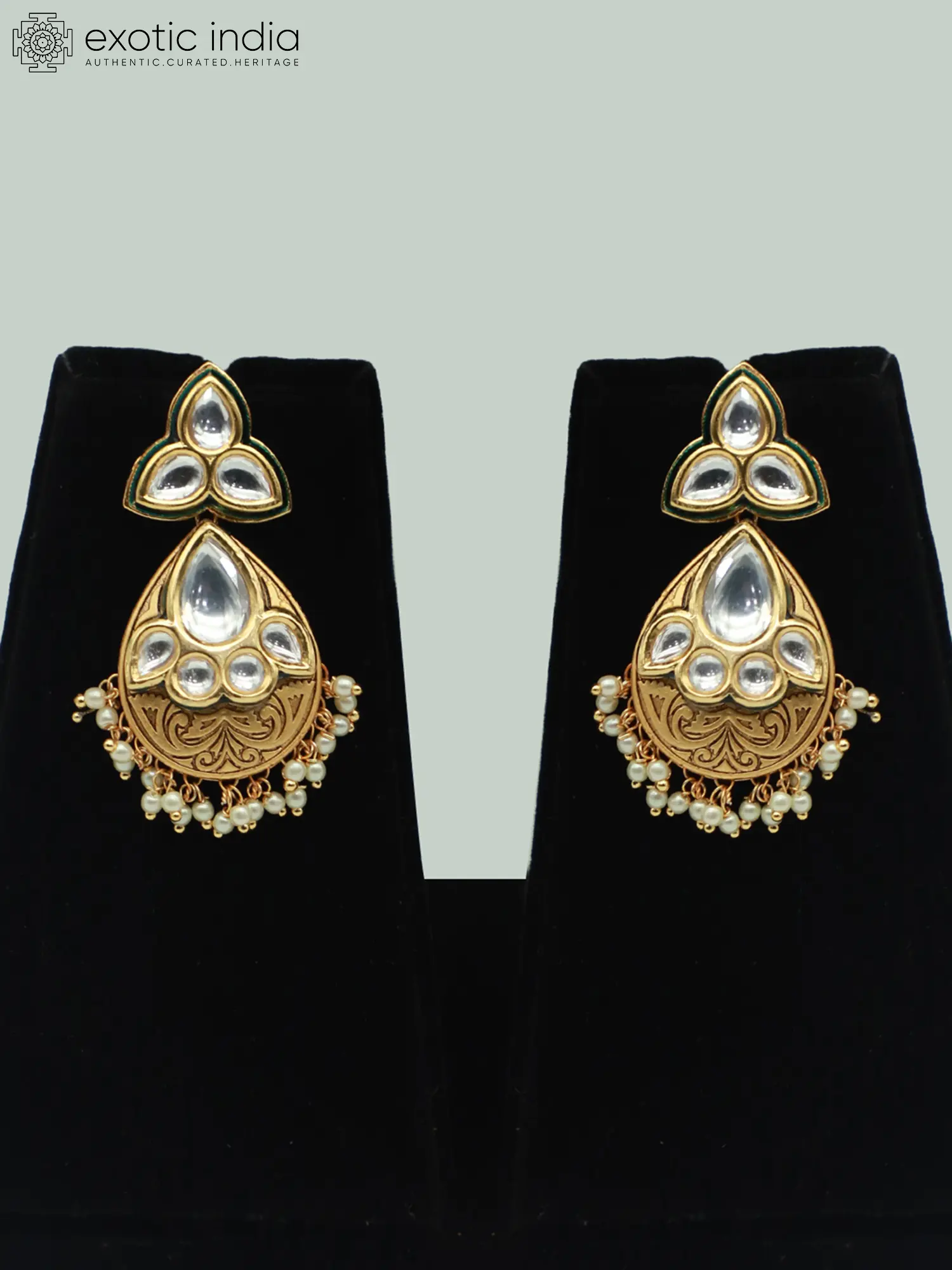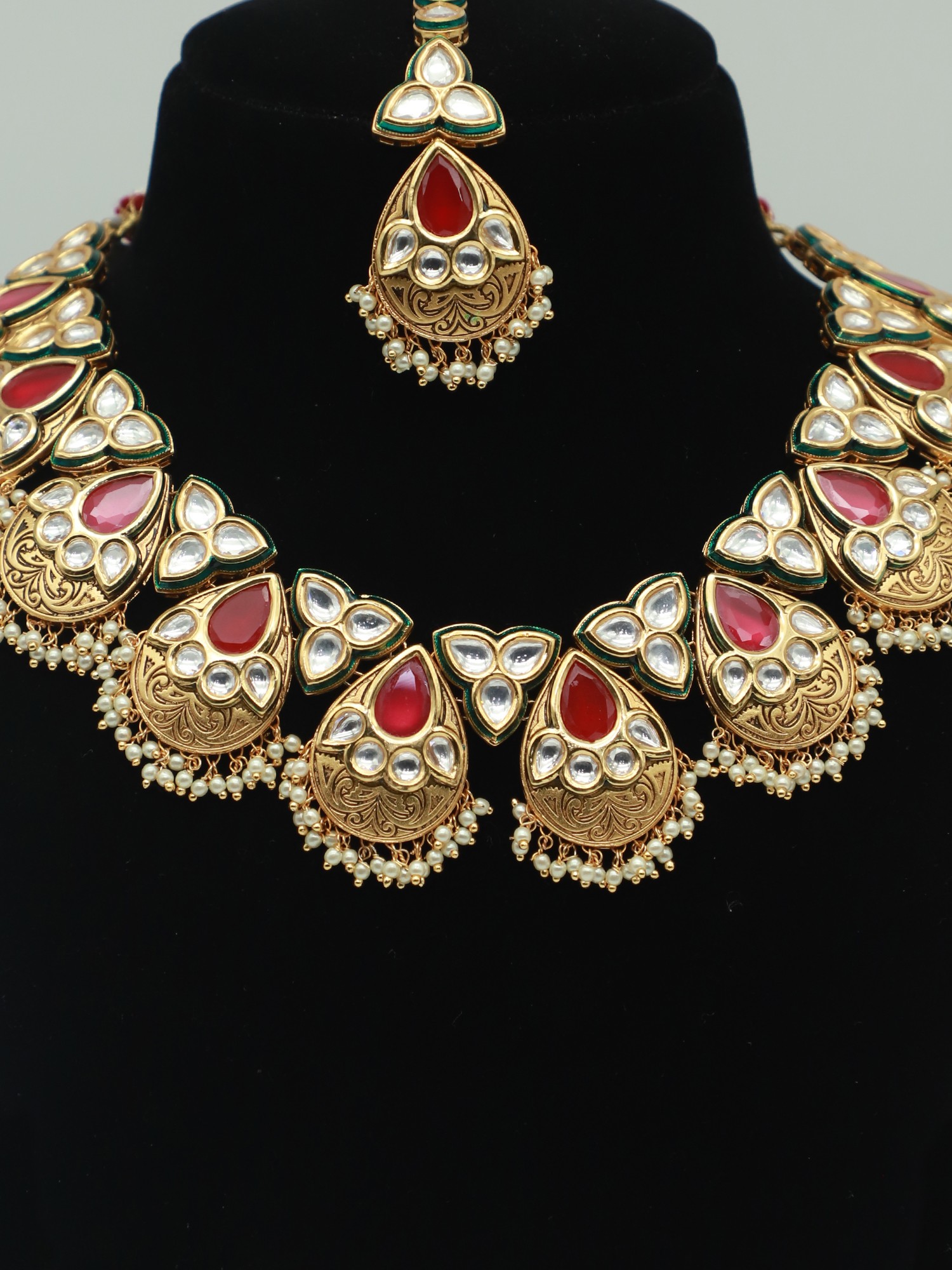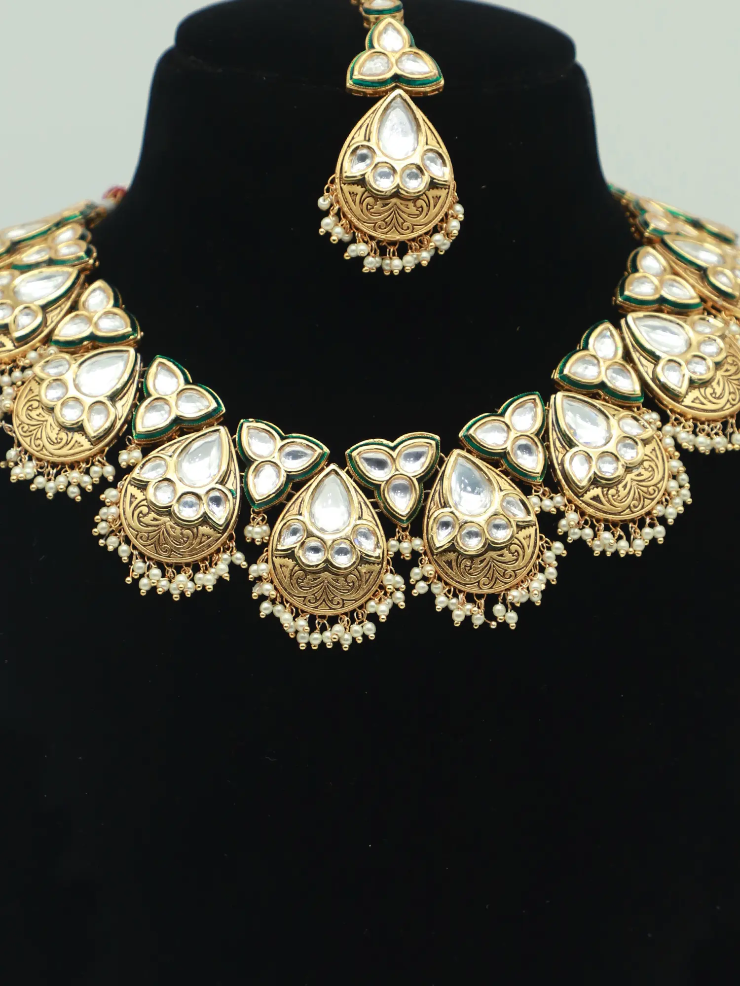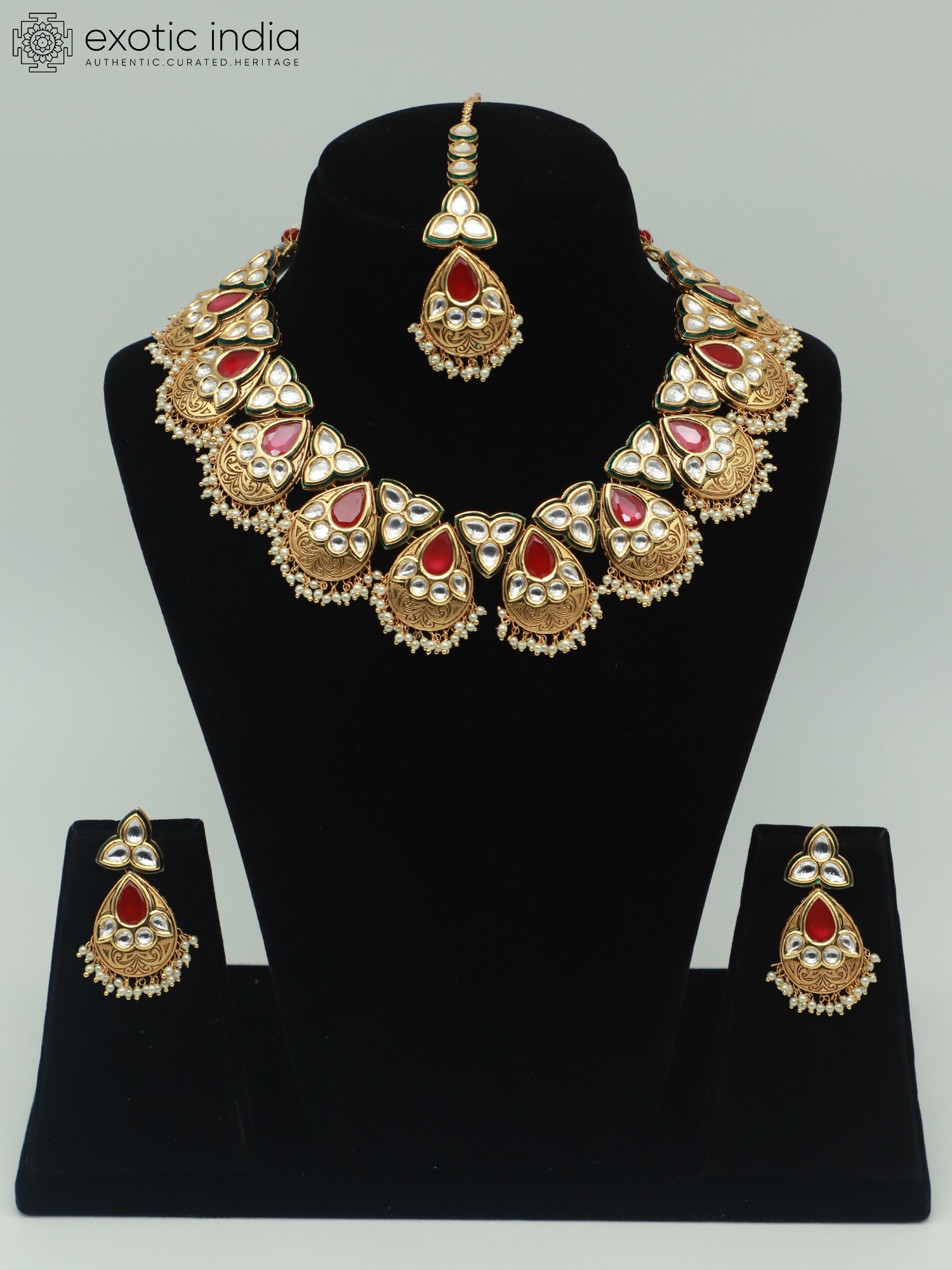 Brass Necklace Set With Beautiful Moissanite Kundan Stone And Earrings