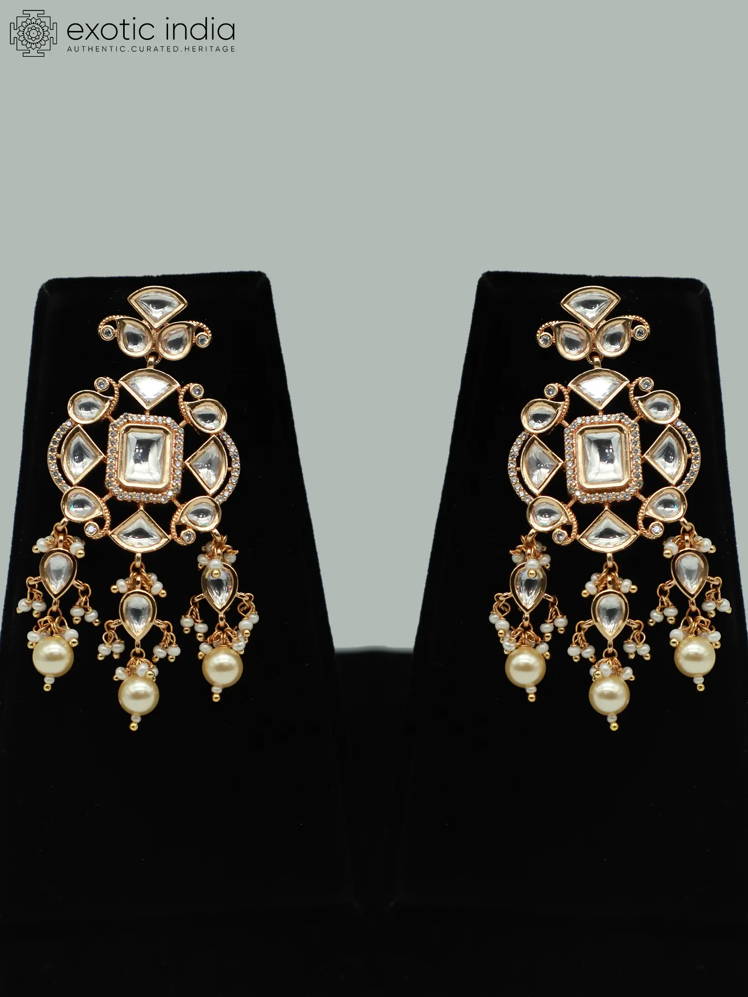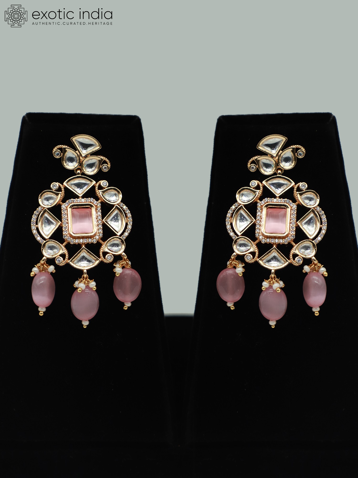The set includes a pair of beautifully coordinated earrings, designed to perfectly complement the necklace. These earrings echo the same design elements, including the Kundan stones and matte finish, creating a cohesive and polished look. They are lightweight and comfortable to wear, allowing you to dance the night away without any discomfort. The earrings provide the perfect finishing touch, making this set an essential addition to any jewelry collection.