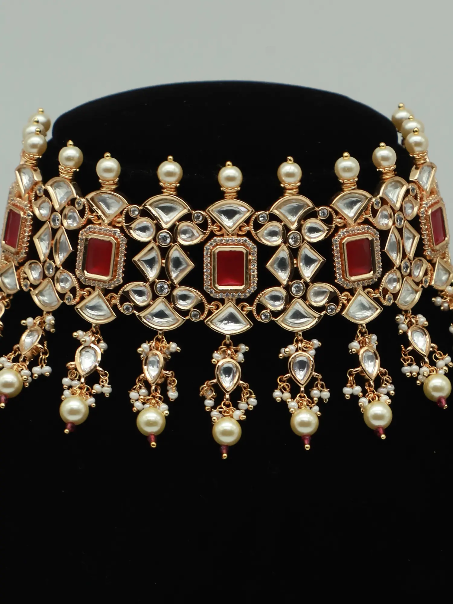 Traditional Choker Set With Matte Finishing And Kundan Stone