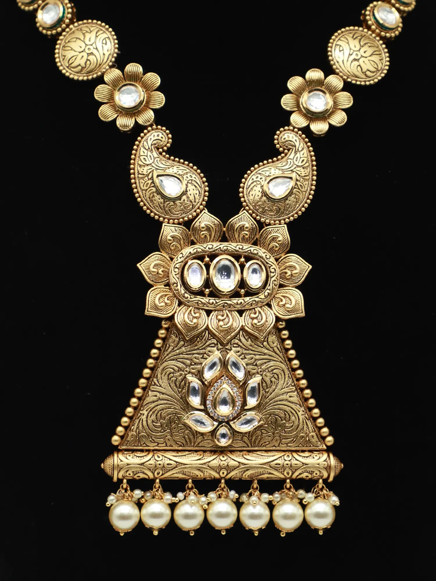 Traditional Necklace Set With Hanging Pearls And Earrings In Matte Finishing