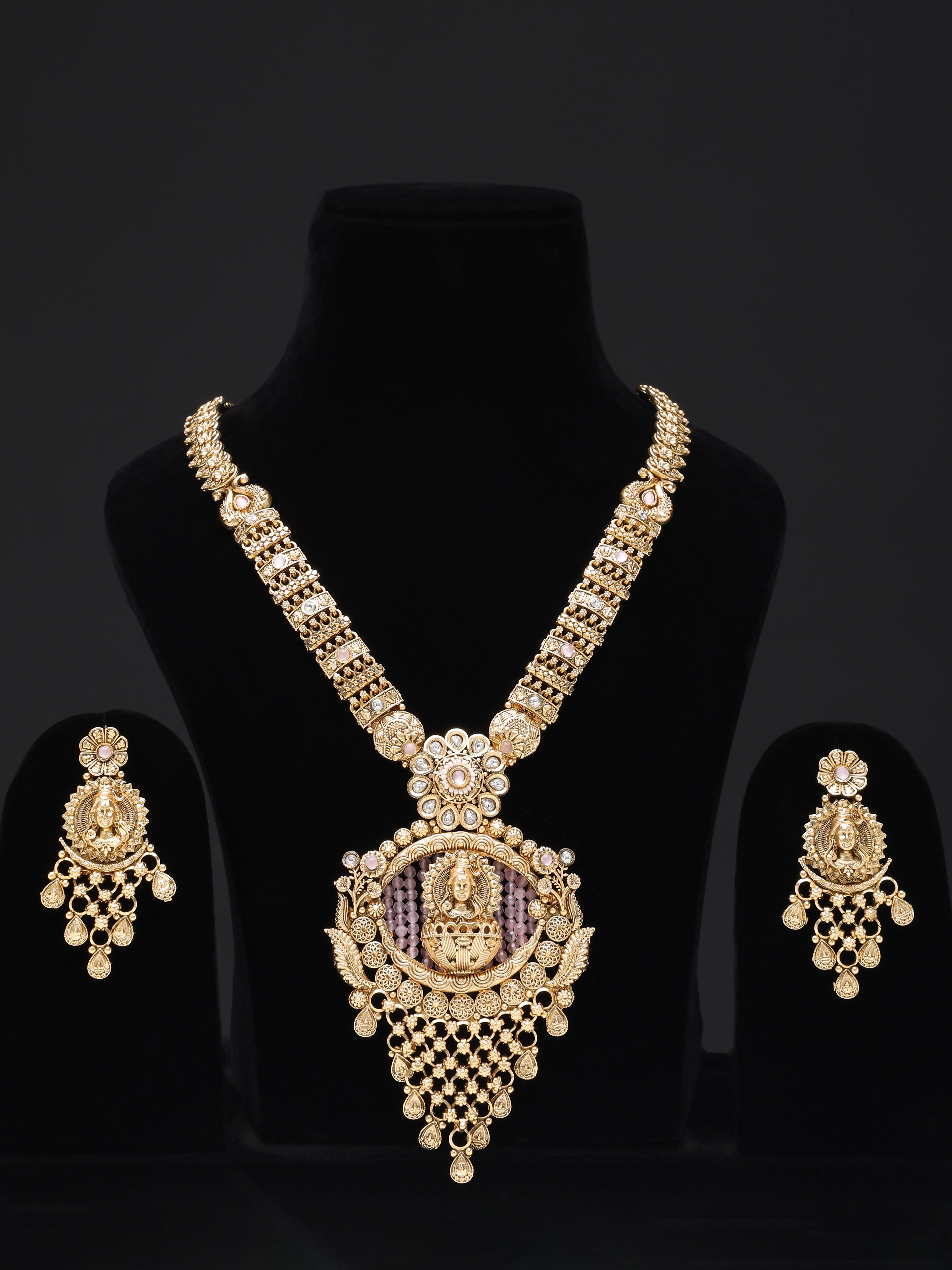Traditional Lord Rama Long Necklace Set with Earrings
