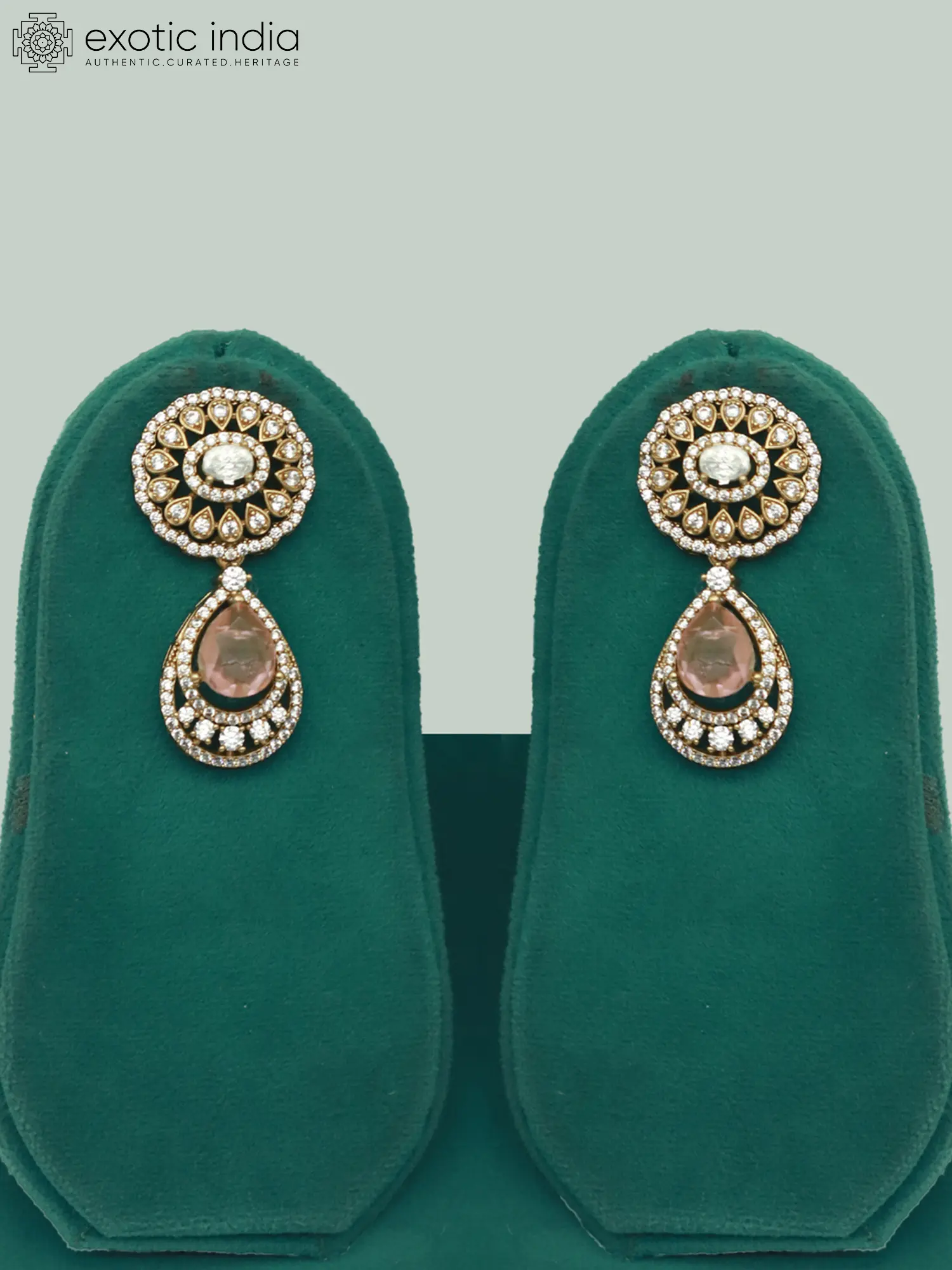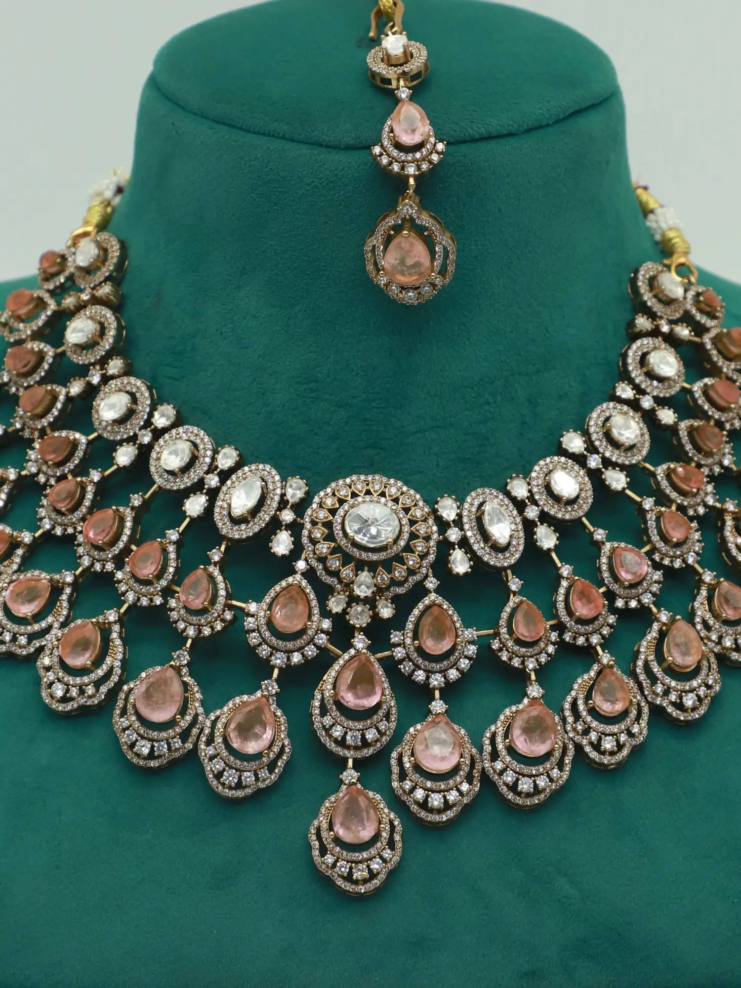 Traditional Moissanite Necklace Set With Doublet Stone And Antique Polish Earrings