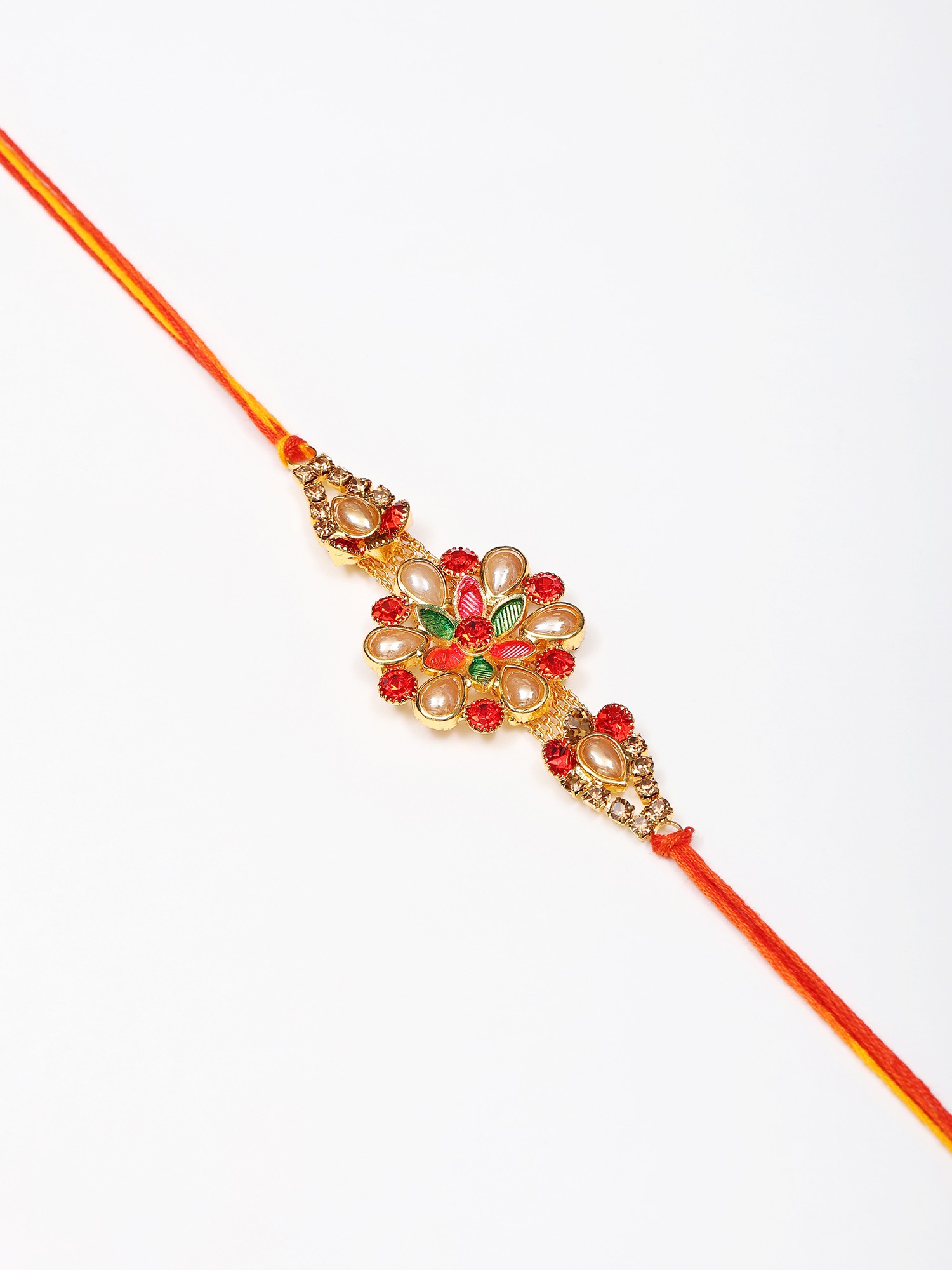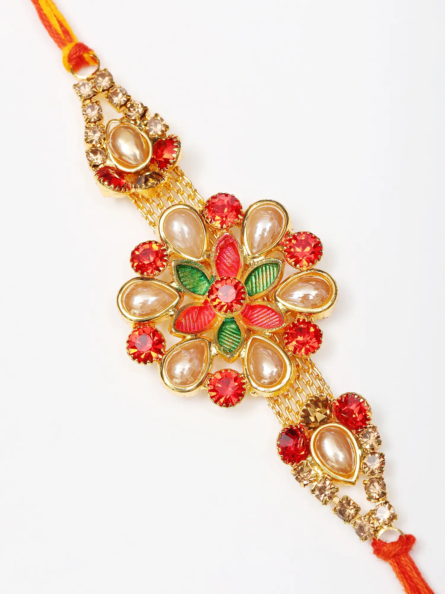 Kundan Studded and Beaded Rakhi with Thread Work Latkan