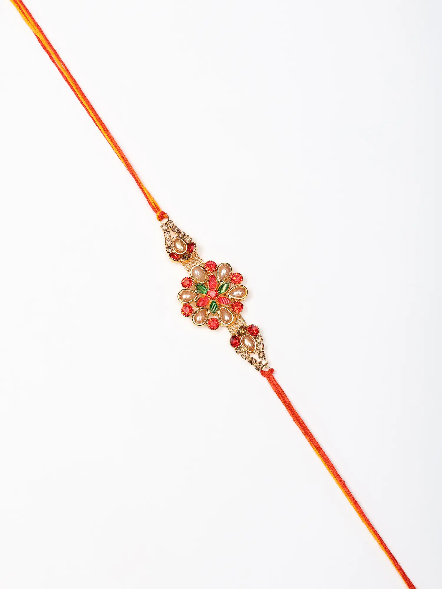 Floral Design Rakhi with Beaded Adjustable Bracelet