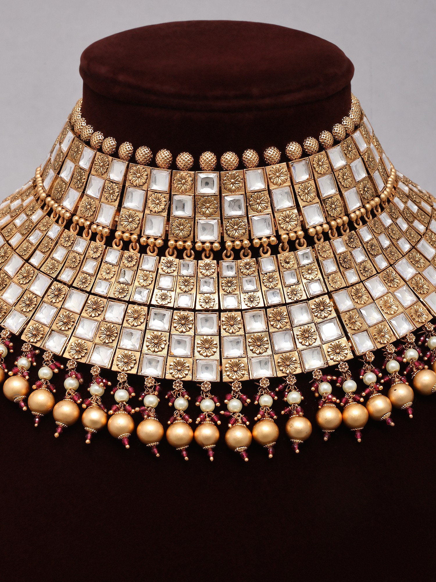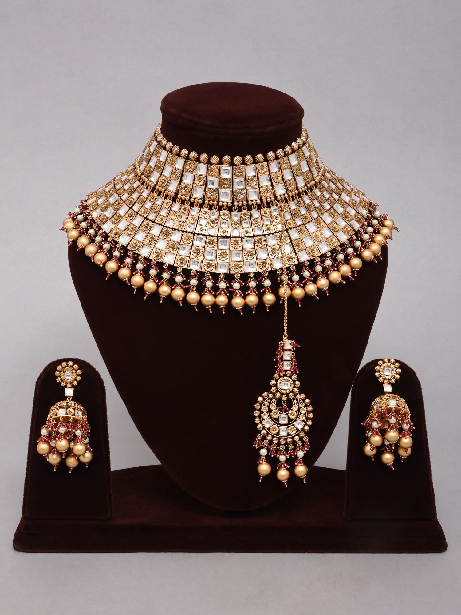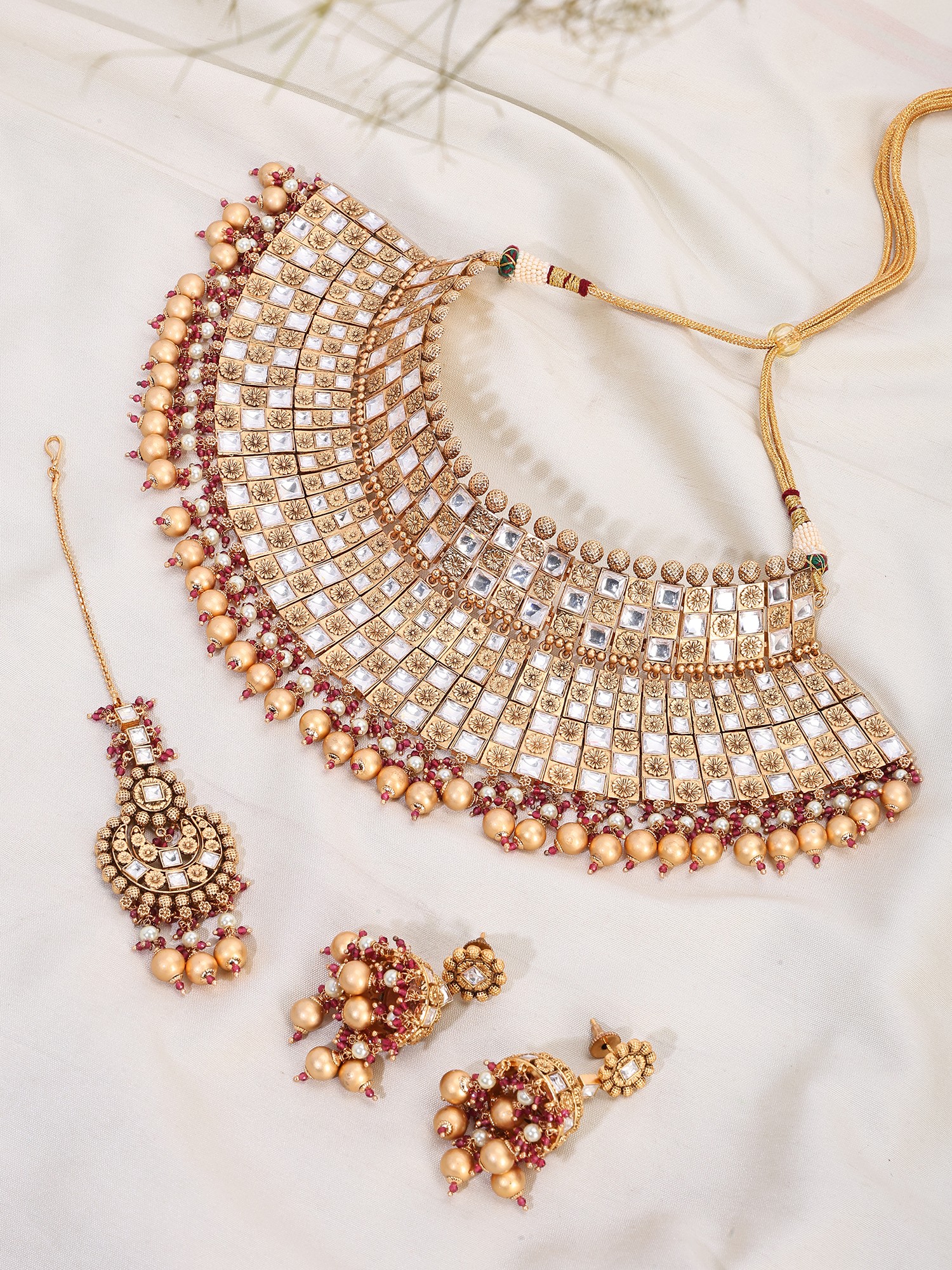 Traditional Square Kundan Bridal Choker Necklace Set with Maang Tikka