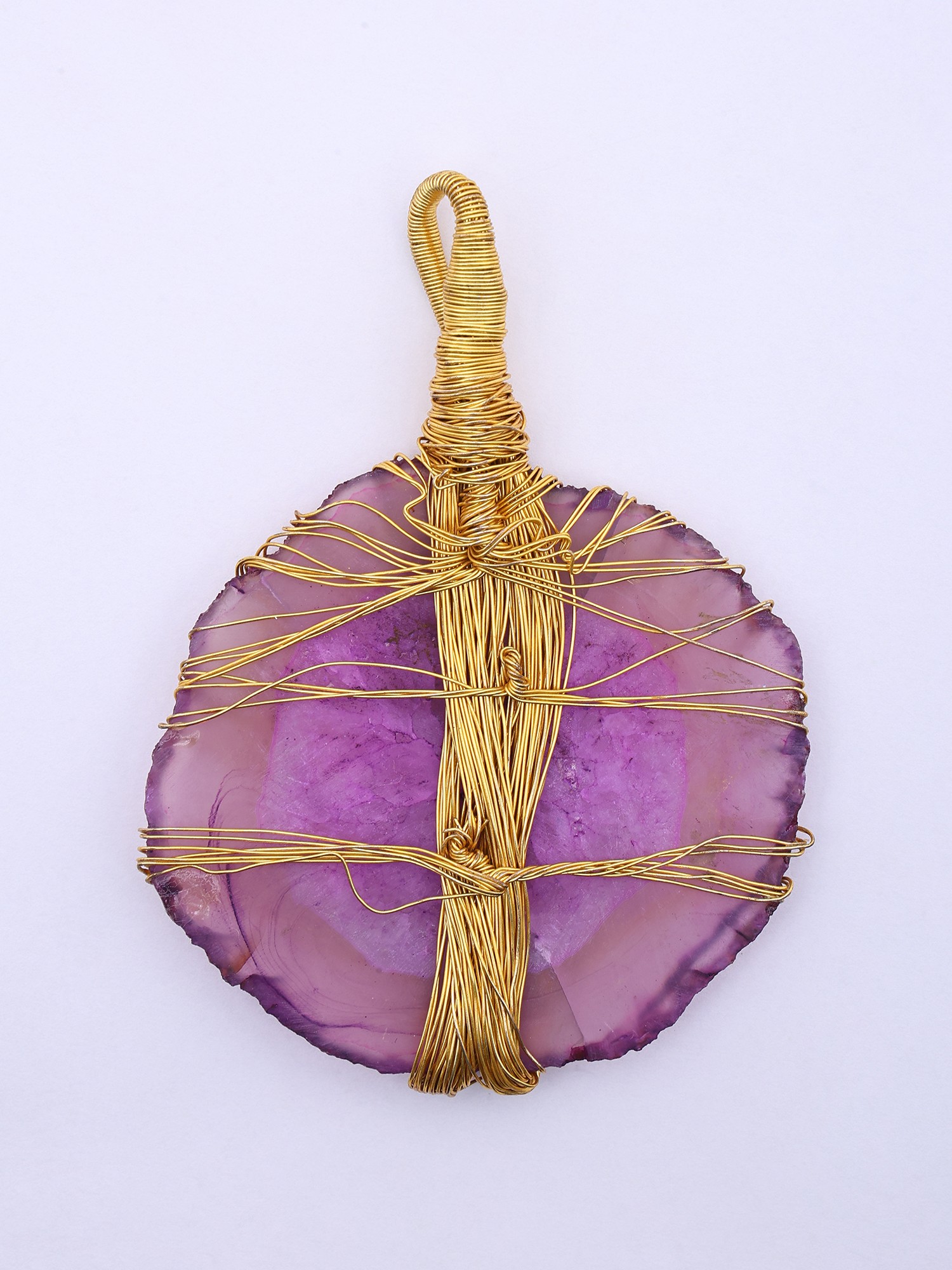 Tree Branch Design Brass Wire-Wrapped Purple Stone Pendant