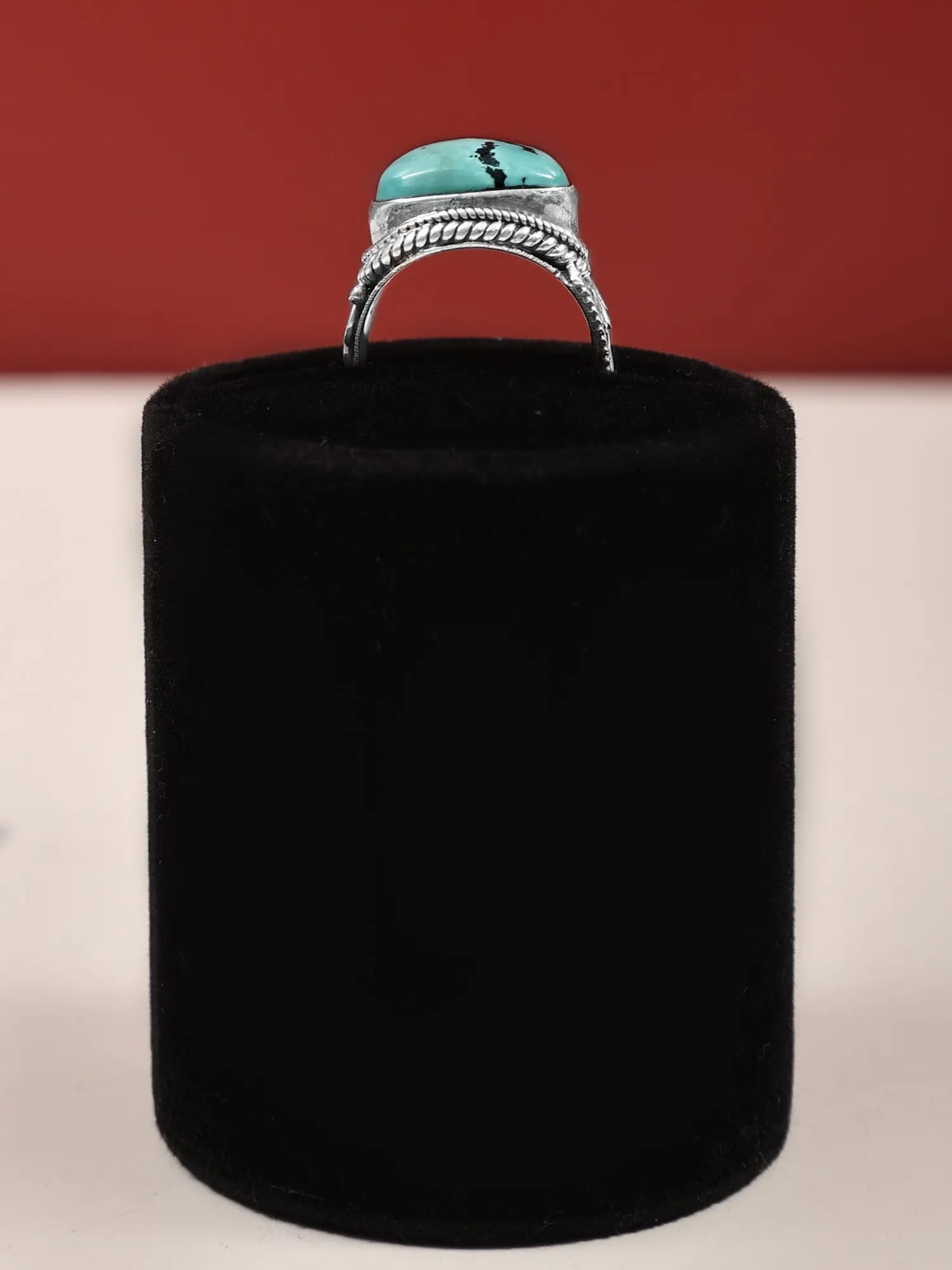 Adorn your fingers with the southwestern charm of our triangle-shaped turquoise sterling silver ring. Meticulously crafted, this ring showcases a unique design with a triangle-shaped turquoise gemstone, blending modern style with natural allure. The sterling silver setting adds a touch of sophistication to the overall aesthetic, creating a versatile accessory suitable for various occasions.