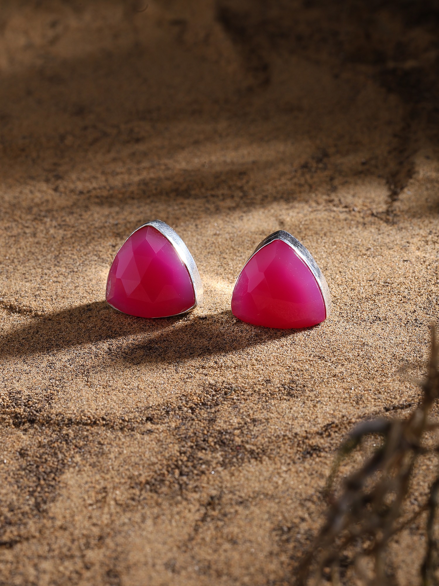 Floral Sterling Silver Earrings with Faceted Sapphire, Ruby and Emerald