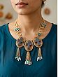 Floral Green and Blue Stone Studded Necklace Set with Earrings