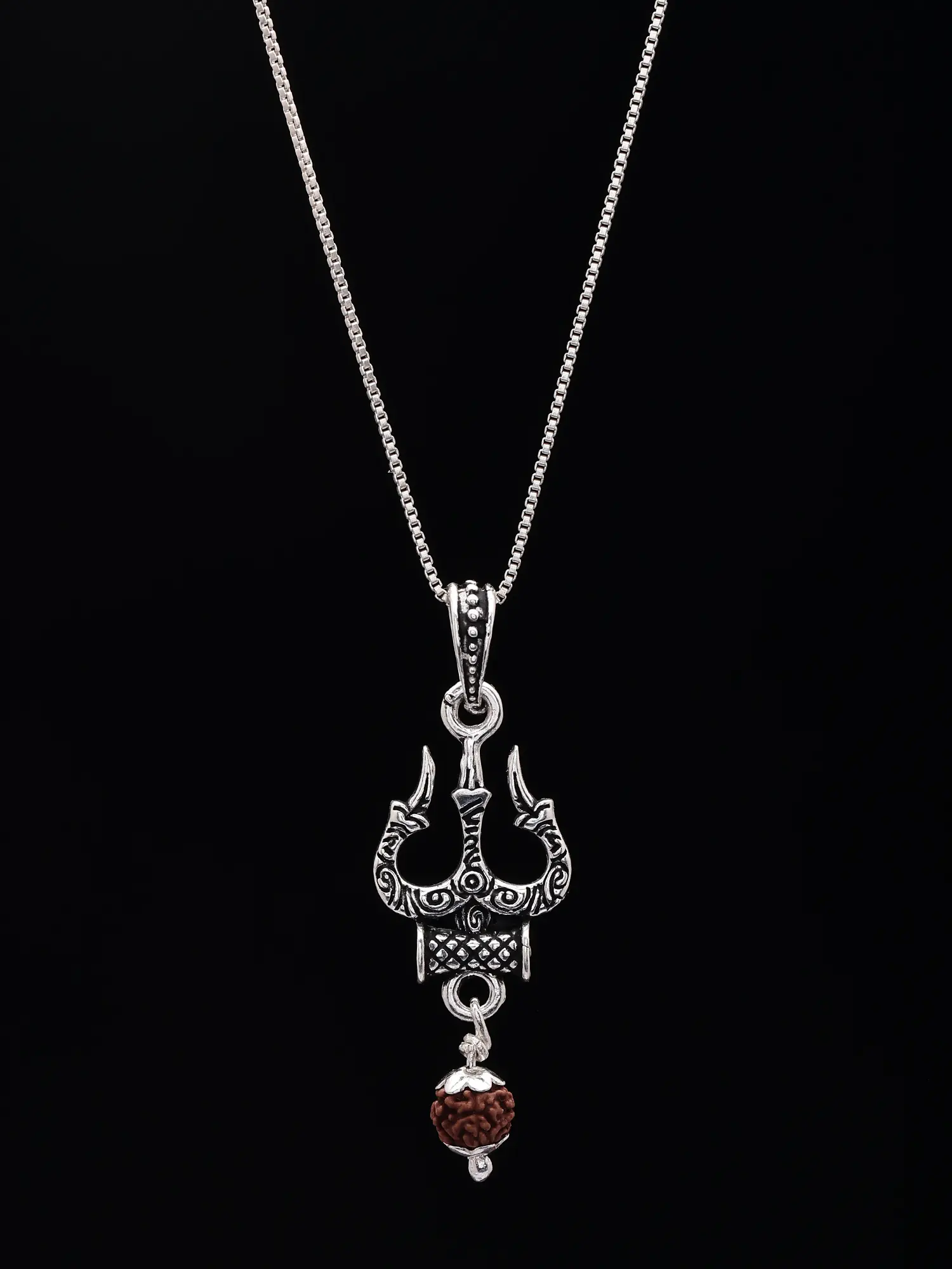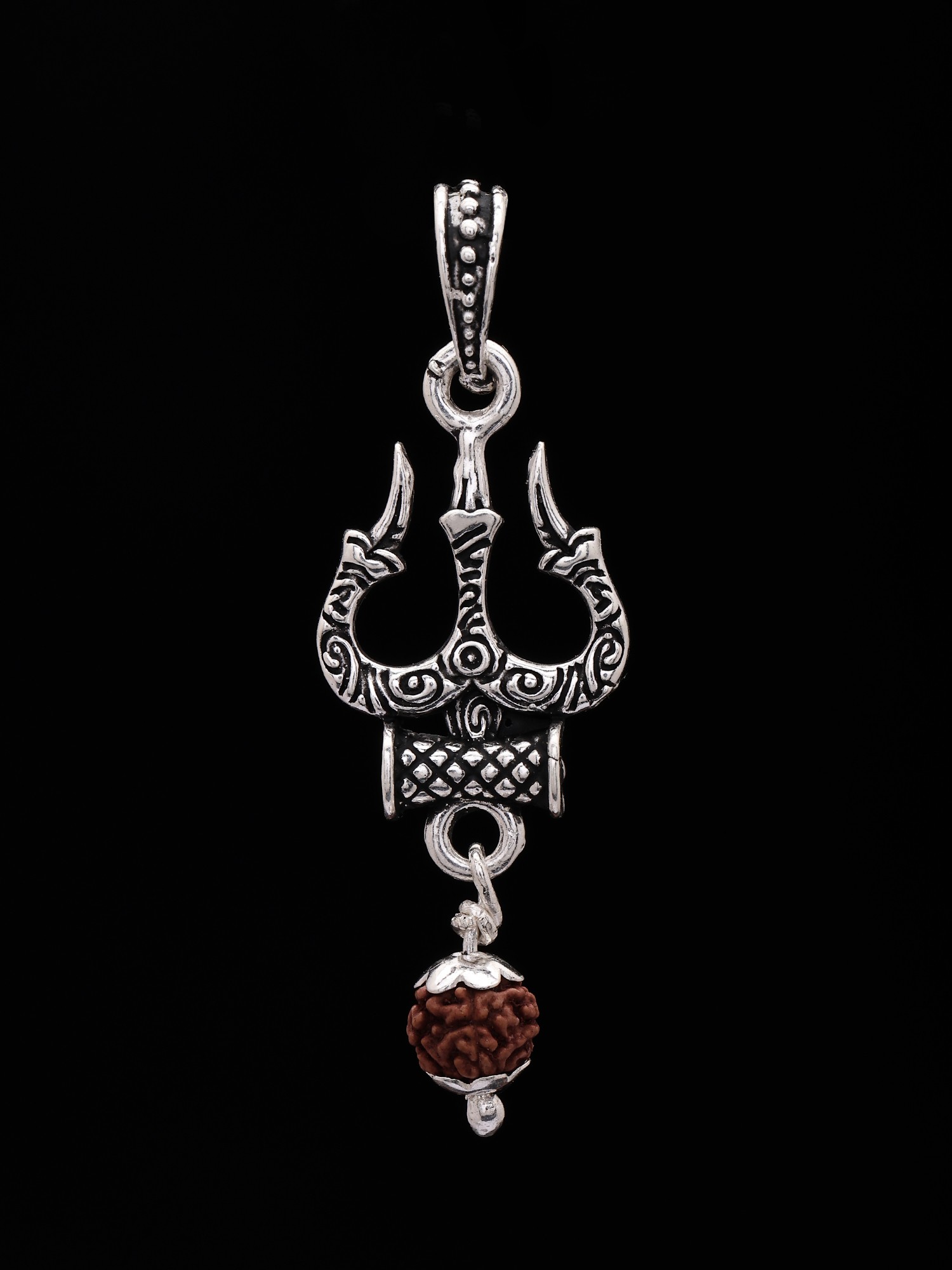 Trishul Sterling Silver Pendant with Dangling Rudraksh