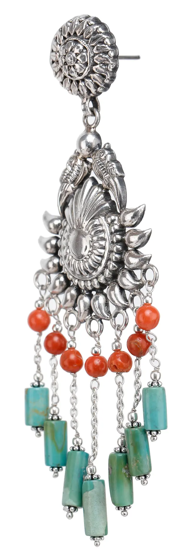 Stylish Sterling Silver Necklace with Coral and Turquoise Stone
