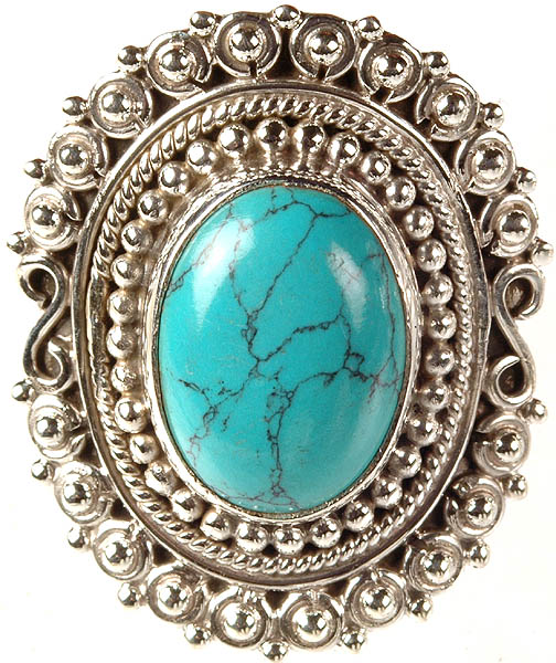 Beautifully Engraved Jali Design Cuff Bracelet with Turquoise (Adjustable Size)
