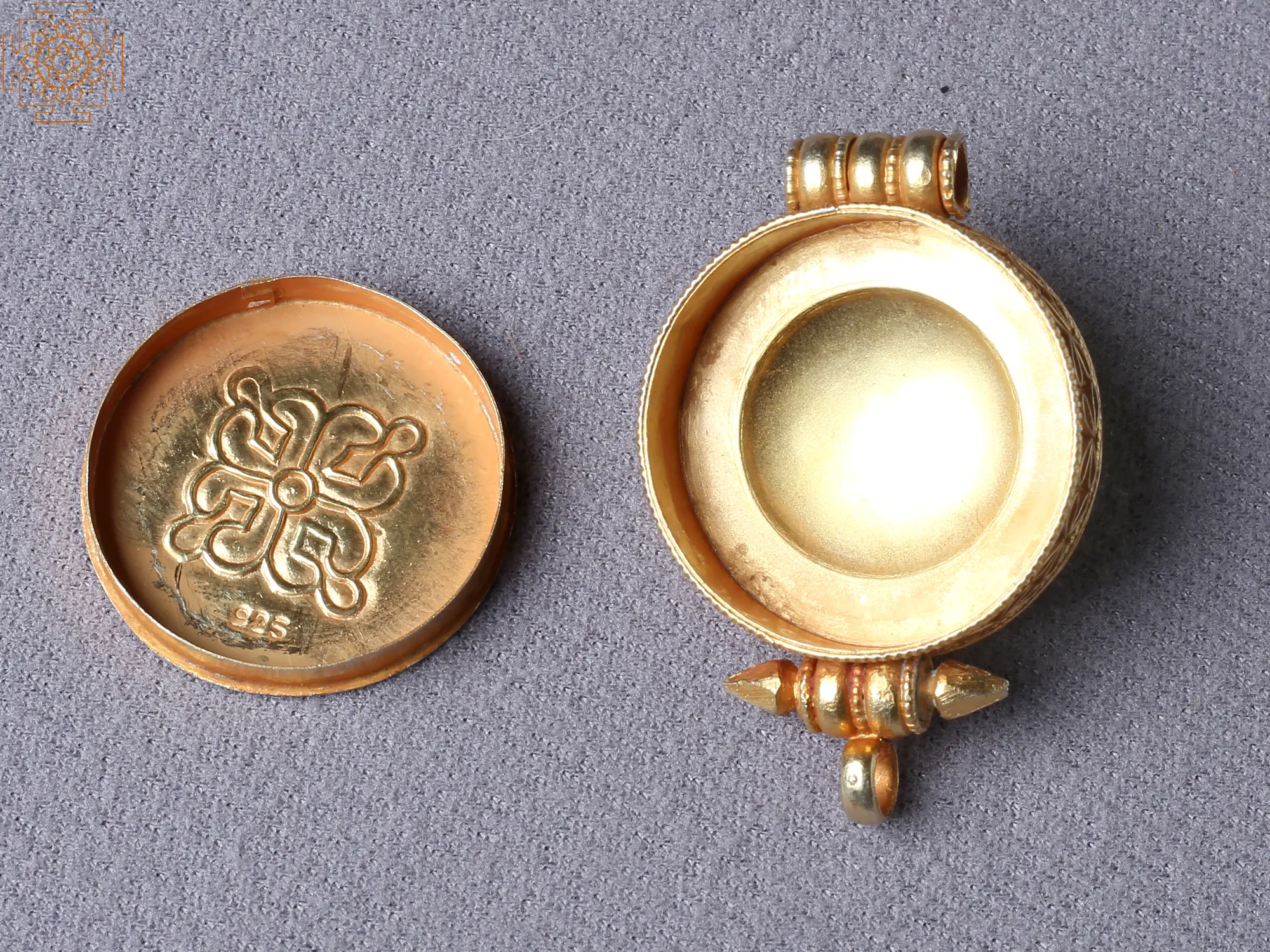 It is made of gold-coated silver. It has a small compartment for accommodating prayer scrolls and has the blessed symbol of the double Dorje at its back. This pendant is a testament to the smart craftsmanship of Tibet and adjoining areas. It is the piece that provides the bearer with safe coverage from negativities in life.