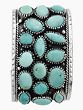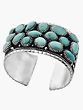 This bracelet is a testament to superior craftsmanship. Each turquoise stone is expertly set in sterling silver, with the delicate detailing showcasing the artist’s skill and attention to detail. The intricate silverwork features a beautifully textured band that frames the turquoise stones, further enhancing their brilliance. The sturdy construction ensures that your bracelet will be a cherished piece for years to come, a testament to quality and enduring style. The adjustable design allows the bracelet to effortlessly conform to your wrist, offering a secure and comfortable fit. It's a piece built to last, designed to be treasured.