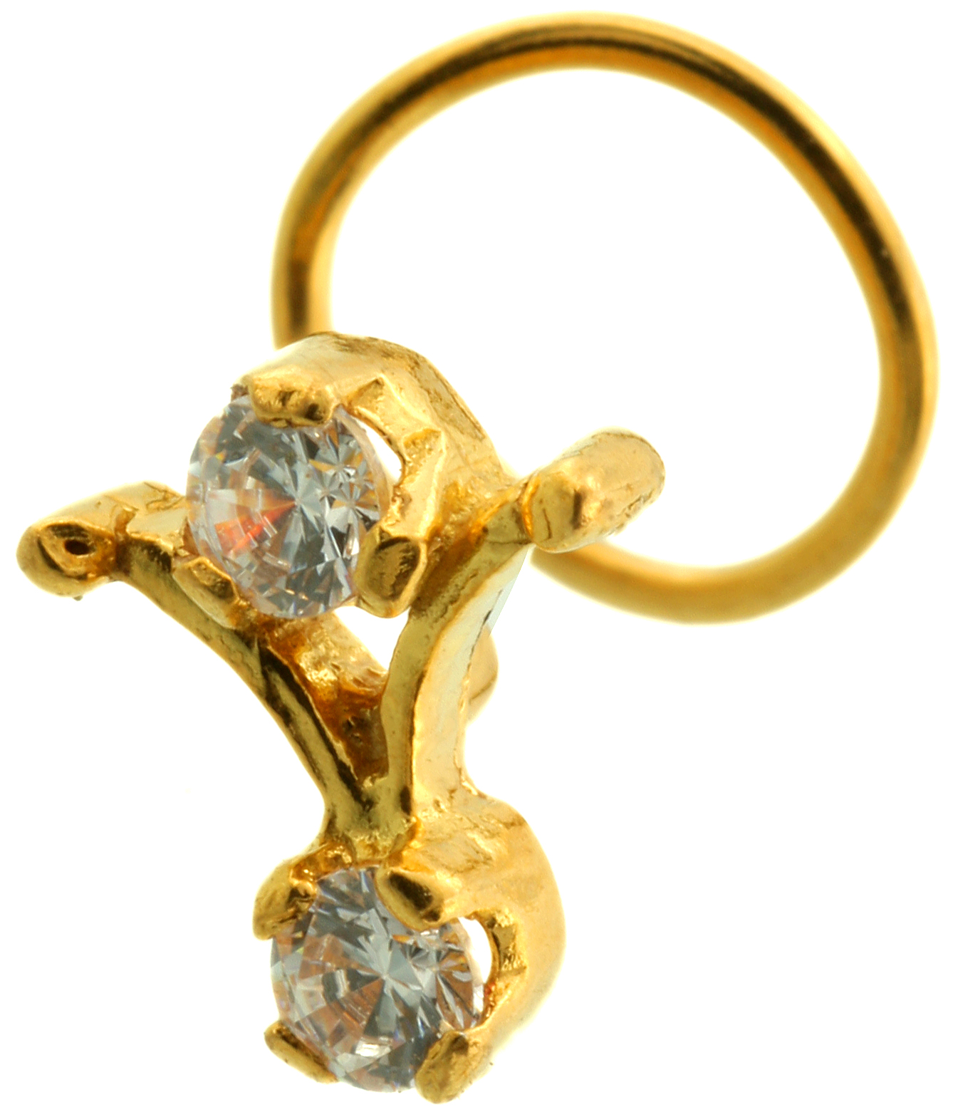 Twin Cubic Zirconia Nose Pin in 18K Gold