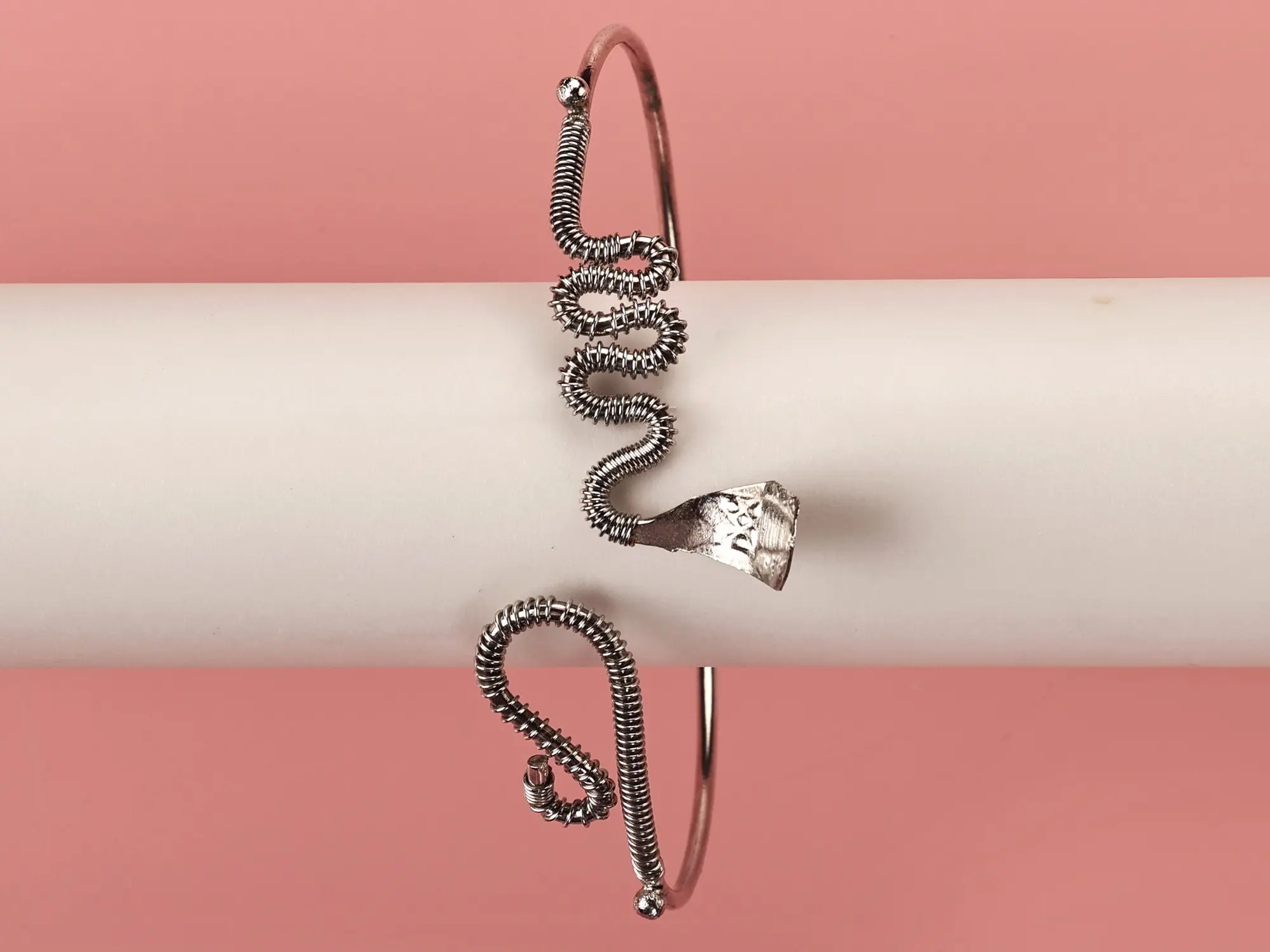 Adorn your upper arm with a unique snake design bracelet, crafted to captivate and command attention. This striking piece of jewelry intricately captures the sinuous form of a snake, symbolizing transformation, wisdom, and power. Designed to coil gracefully around your arm, the bracelet exudes a sense of mystique and allure. Crafted from high-quality materials, it boasts exquisite detailing and craftsmanship, ensuring durability and longevity.