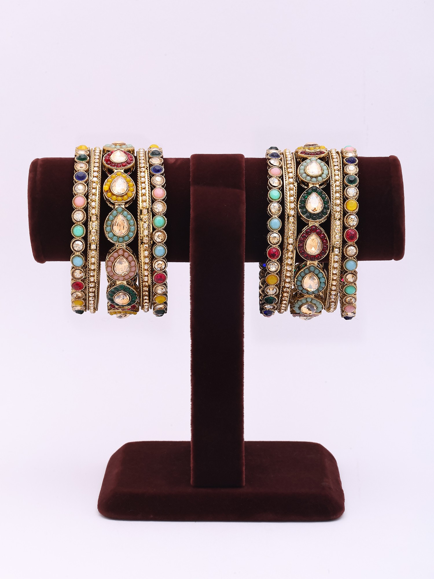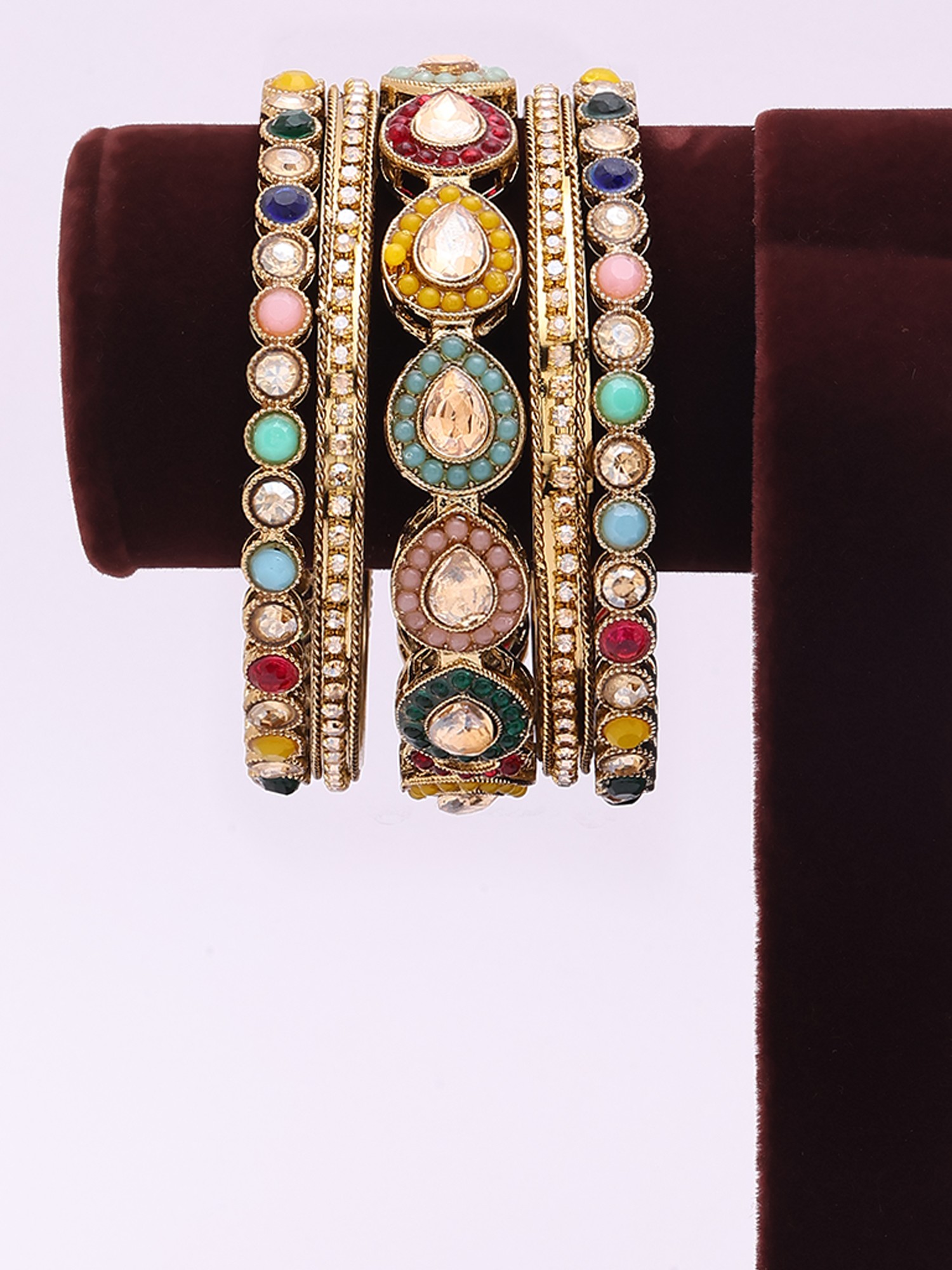 Antique Gold Finish Stone Studded Designer Bangles (Set of 6)