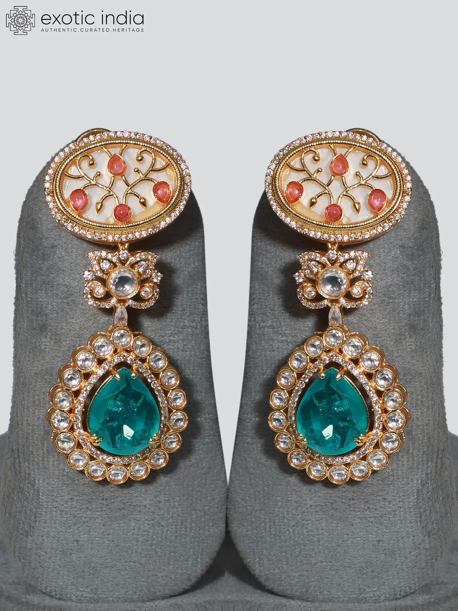 Beautiful Choker Set For Bridal With Green Hanging Beads And Attractive Earrings