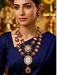 This is more than just a necklace and earrings; it's a statement piece that reflects the timeless beauty and artistry of traditional Indian craftsmanship. It's a heritage piece, imbued with the spirit of tradition and meticulously crafted to last for generations. Perfect for special occasions or to add a touch of regal flair to your everyday style, the Victoria Polish Traditional Double Layer Long Necklace Set is a celebration of exquisite design and timeless elegance. The rich color palette adds a touch of drama, making it ideal for those who appreciate bold and luxurious accessories.
