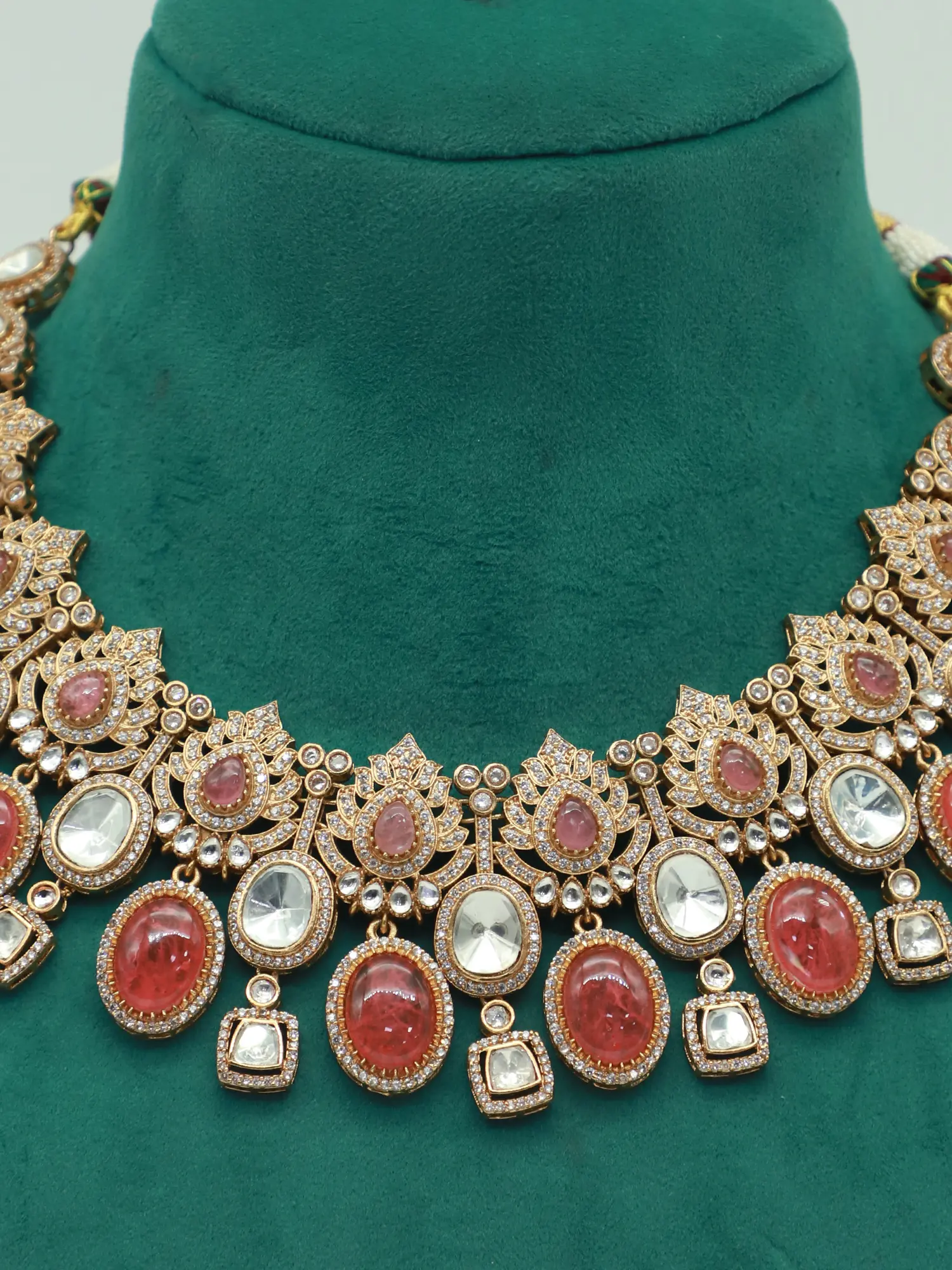 NECKLACE : 17.2 INCH LENGTH X 8.5 INCH WIDTH EARRINGS : 3.2 INCH HEIGHT X 1.5 INCH WIDTH Mangtika - 5 Inch Length