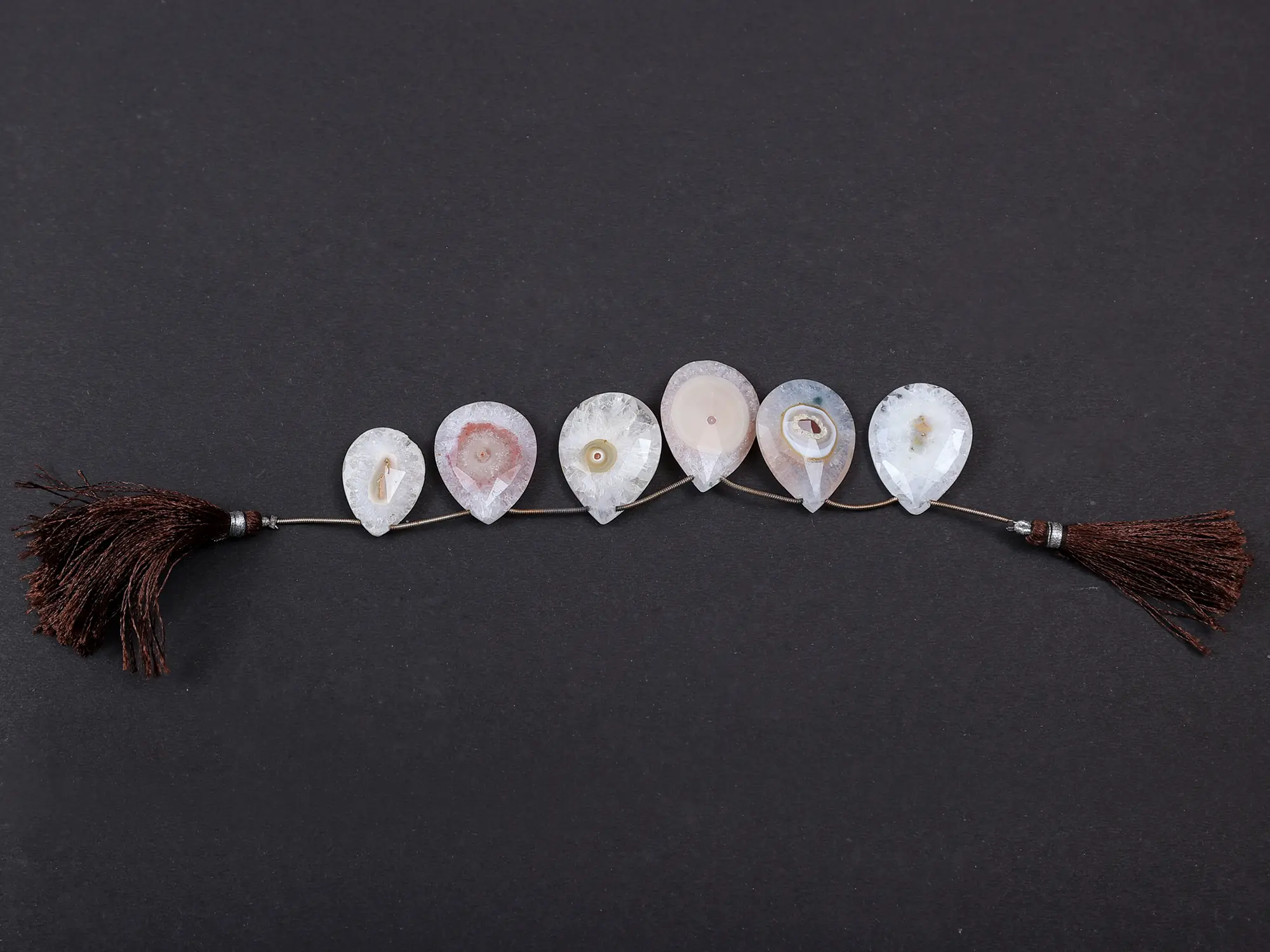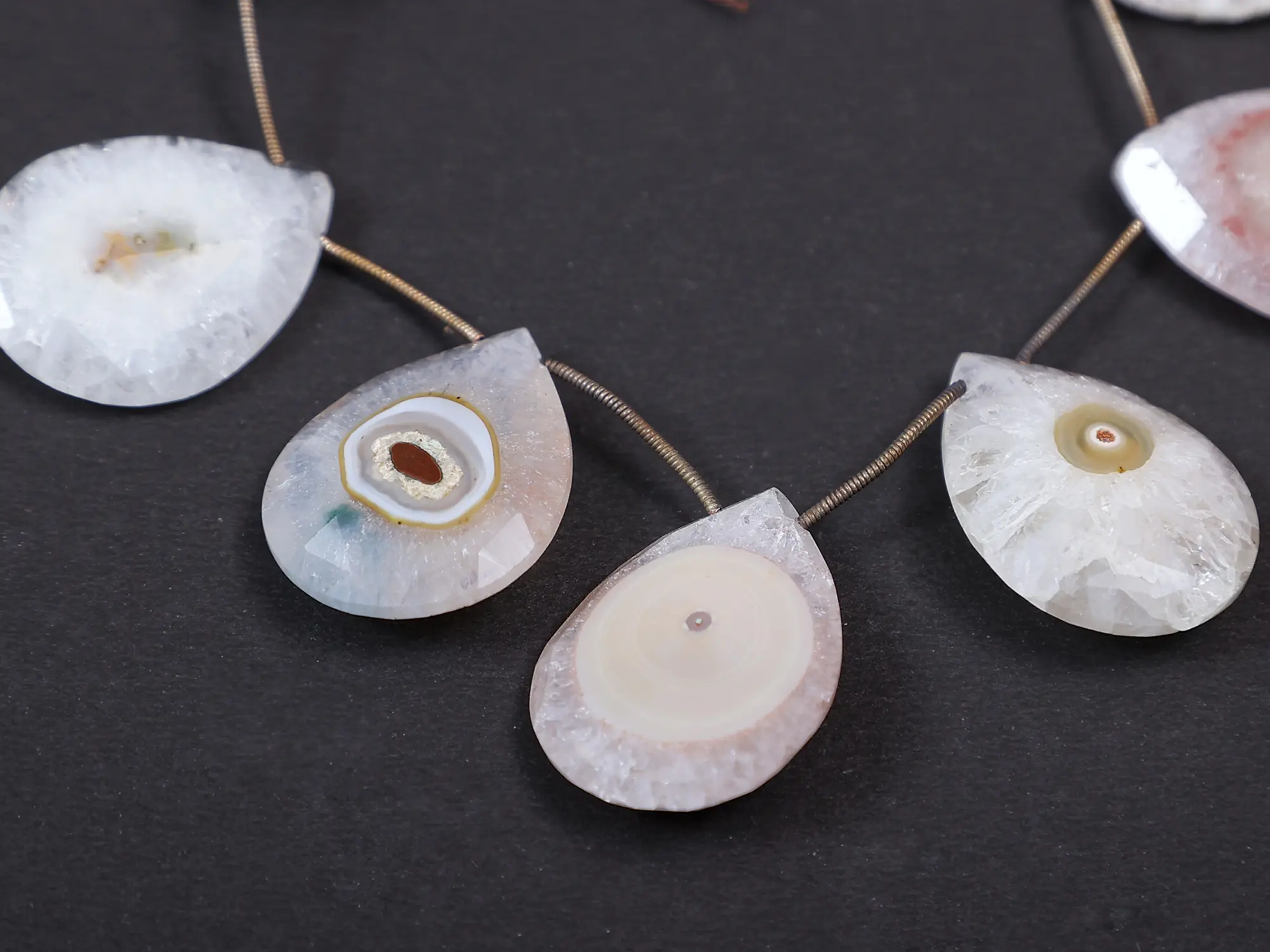 This White Agate Stone Nuggets on a String arrangement may be used to create an excellent piece of jewelry. Each White Agate Stone Nugget may be used to make various jewelry. Whether it's a ring, a pair of earrings, or a pedant, each nugget may give birth to a slew of other one-of-a-kind items. The string may be worn as a necklace as well. The fossil corals that give rise to agate are in high demand as basis materials for contemporary and eccentric jewelry.