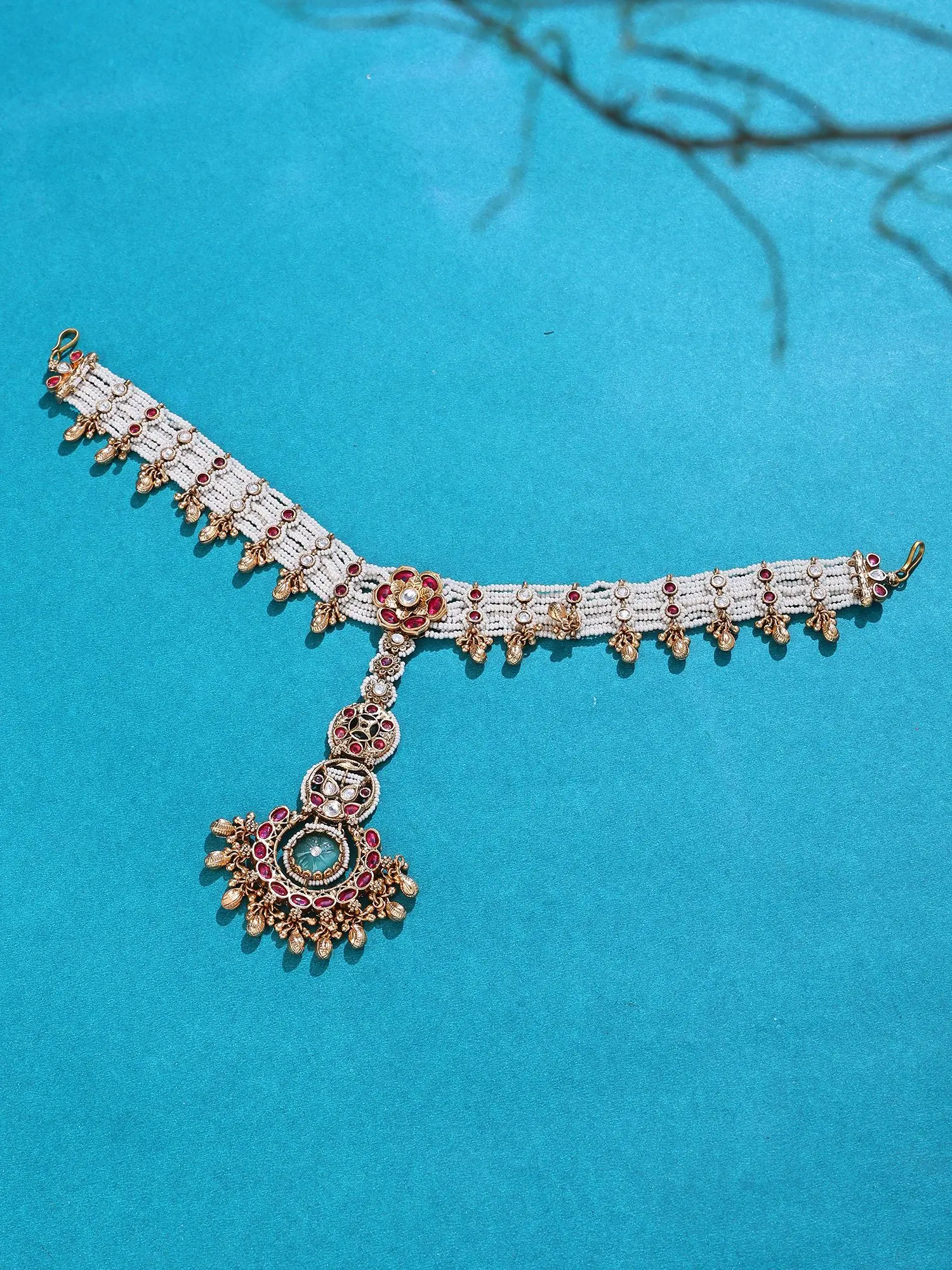 Designed as a traditional forehead ornament, perfect for weddings and celebrations.