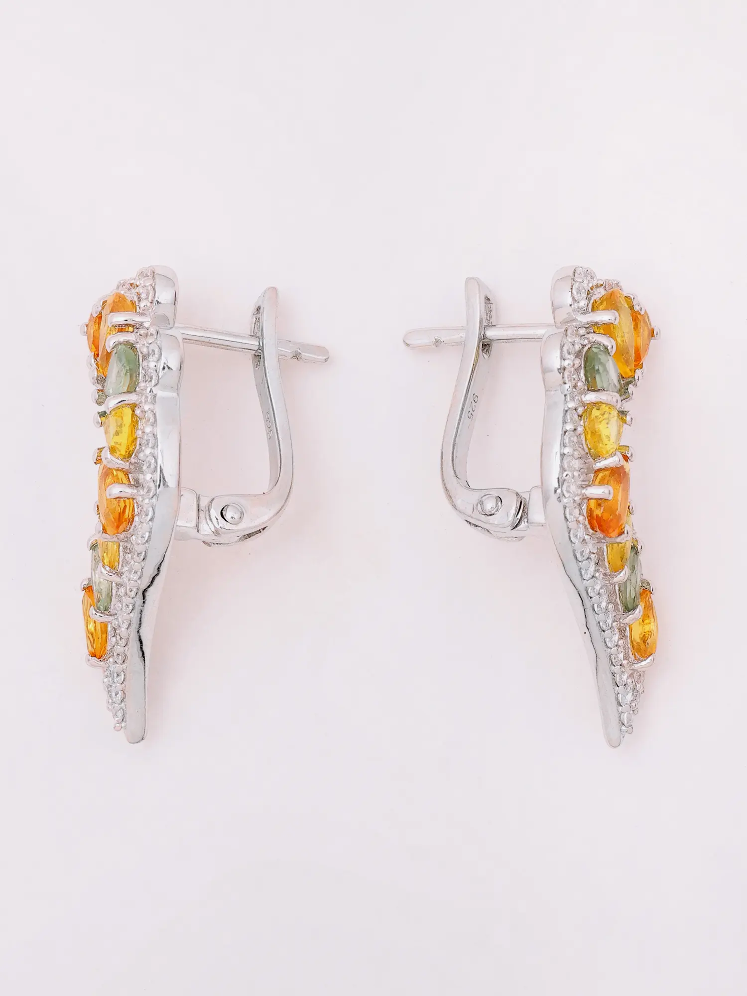 Beautiful Sterling Silver Earring with Ruby and Citrine Gemstone