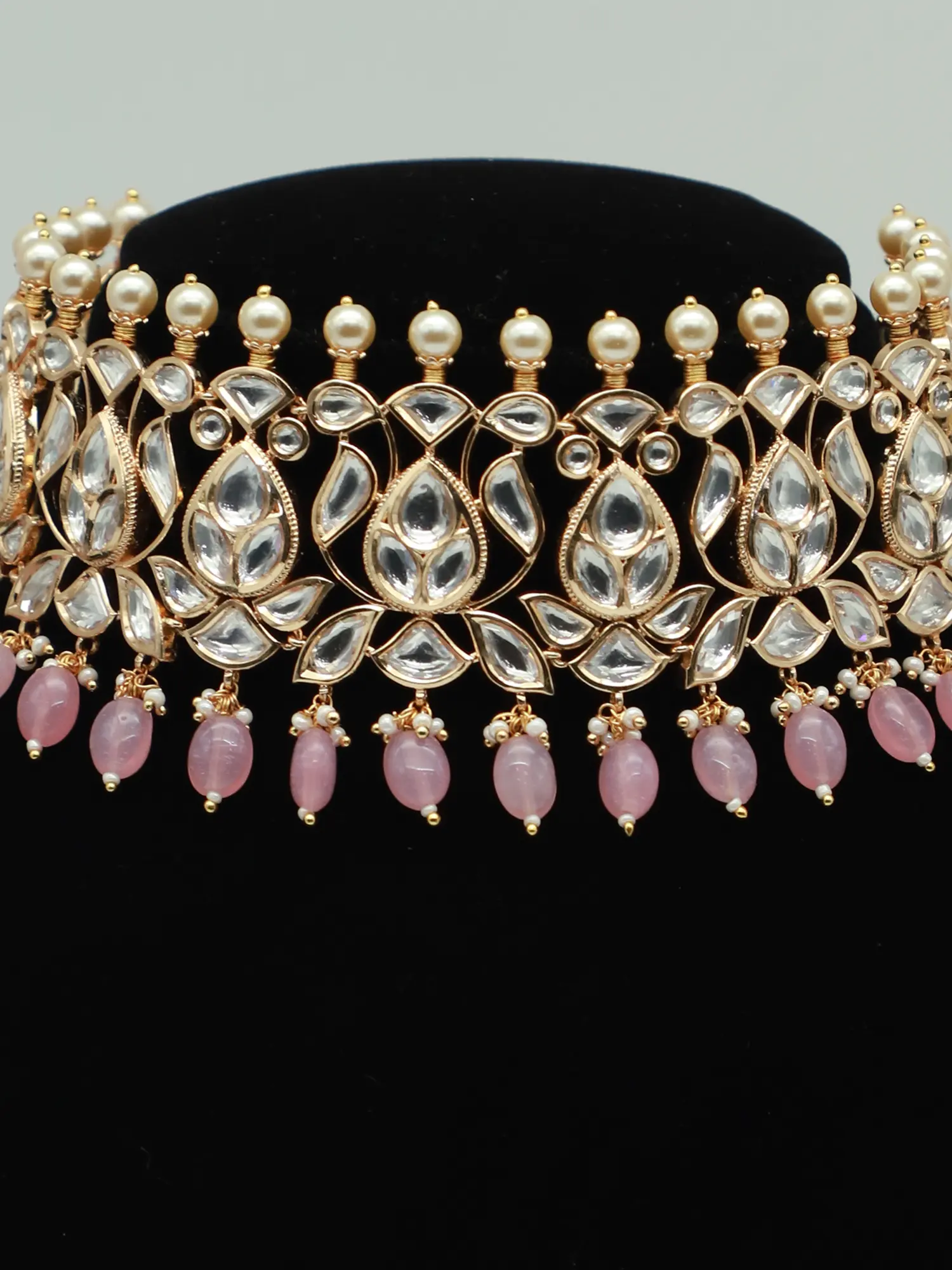 Meenakari Design Choker Set With Matte Finishing And Drop Beads