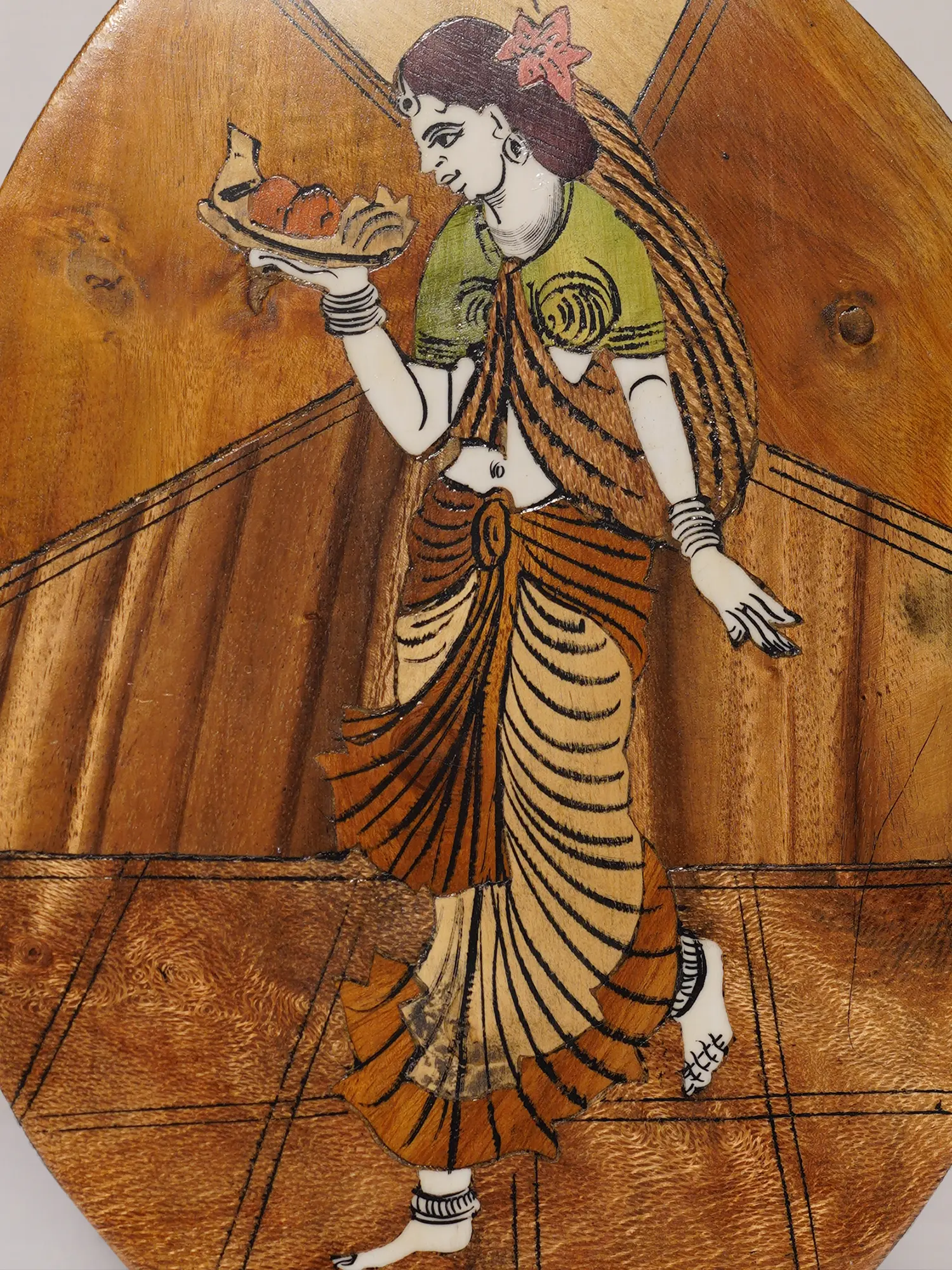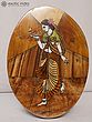15" Cowherding Lady | Natural Color on Wood Panel with Inlay Work