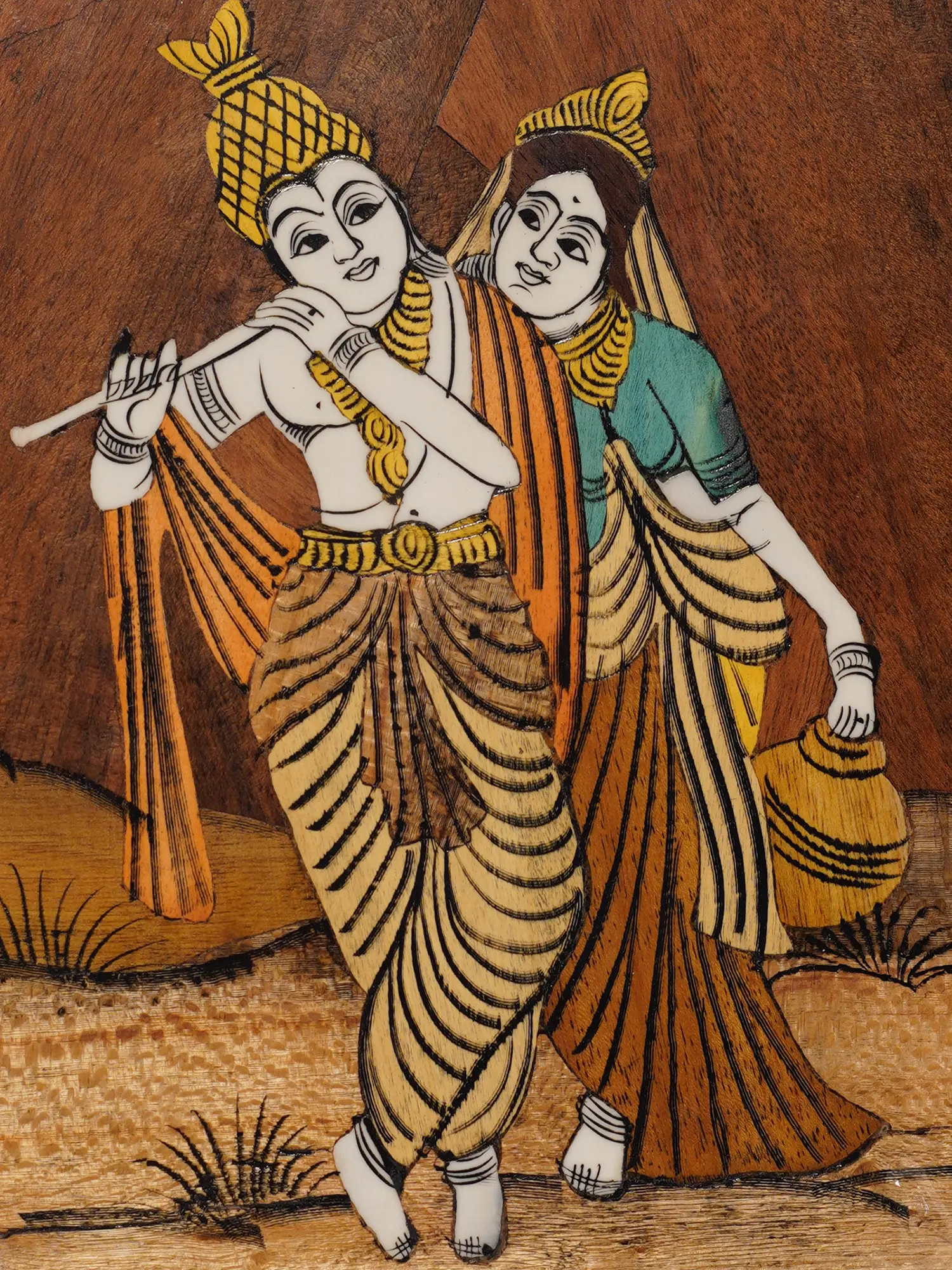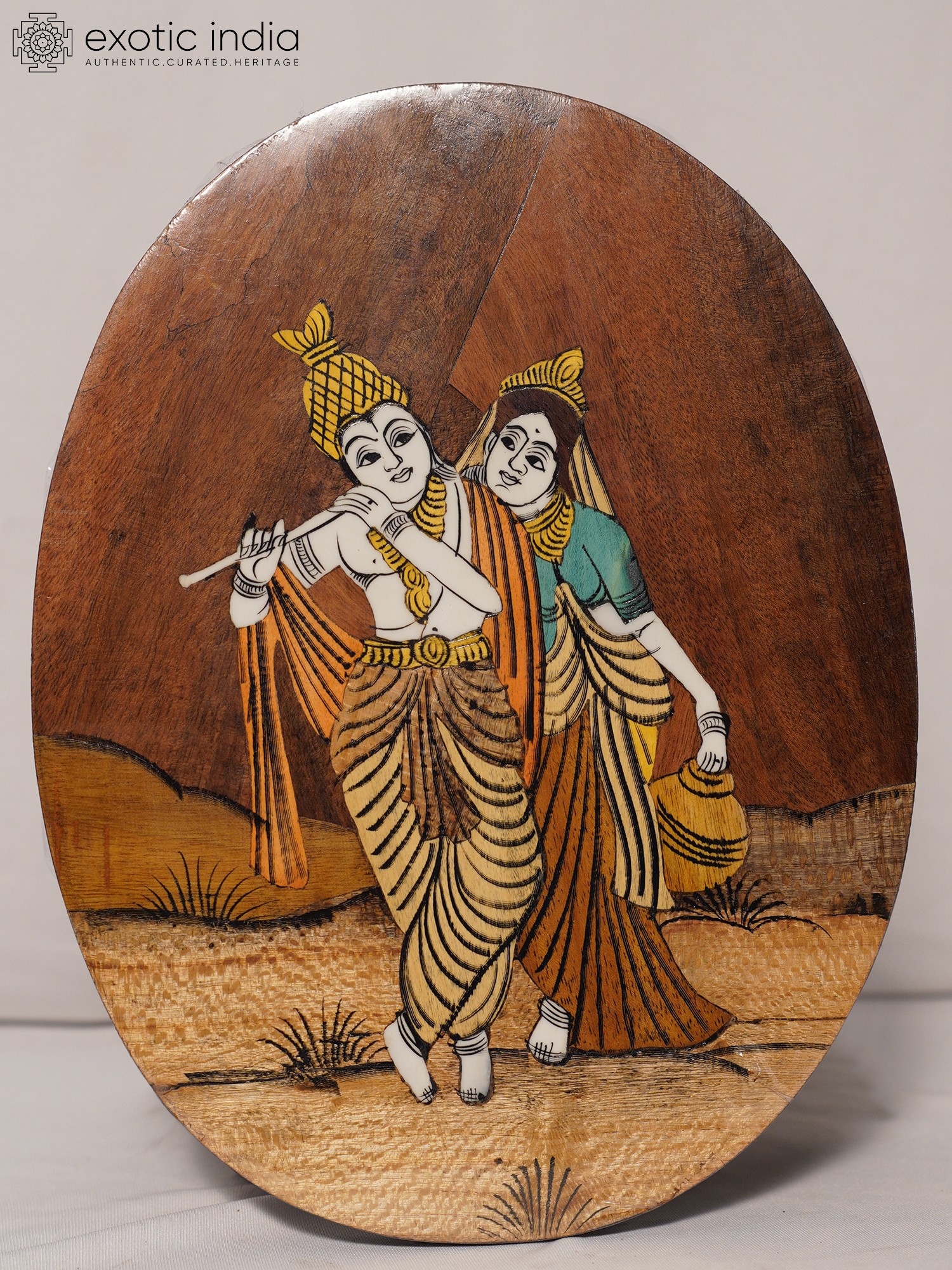 12" Lord Krishna With Radha Rani | Rosewood Panel With Inlay Work