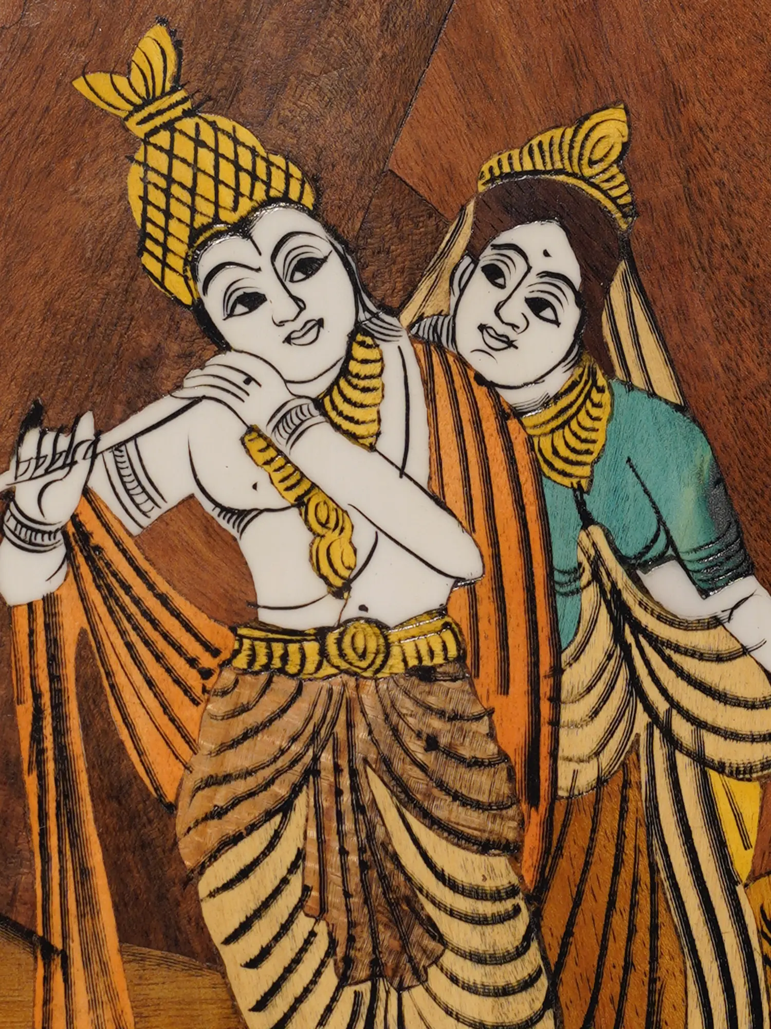 18" The Tune Of Flute - Radha Krishna | Rosewood Panel With Inlay Work