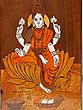 18" Goddess Lakshmi Seated on Lotus | Natural Color on Wood Panel with Inlay Work