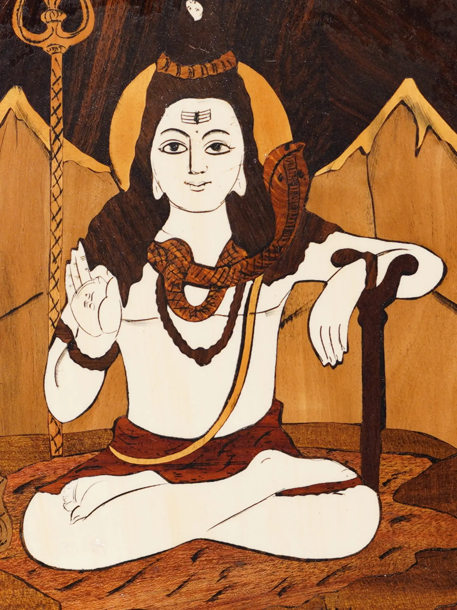 36" The Shiva Family | Natural Color On Wood Panel With Inlay Work