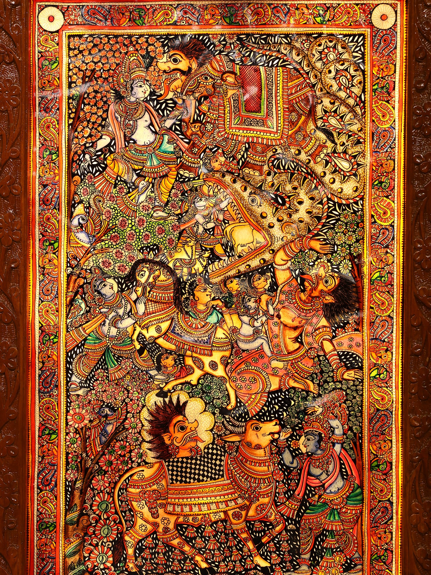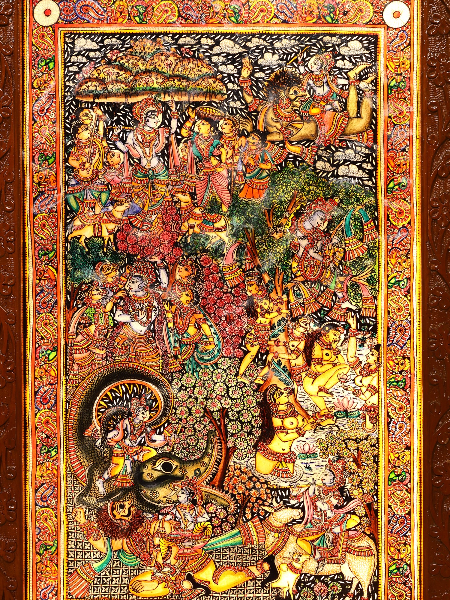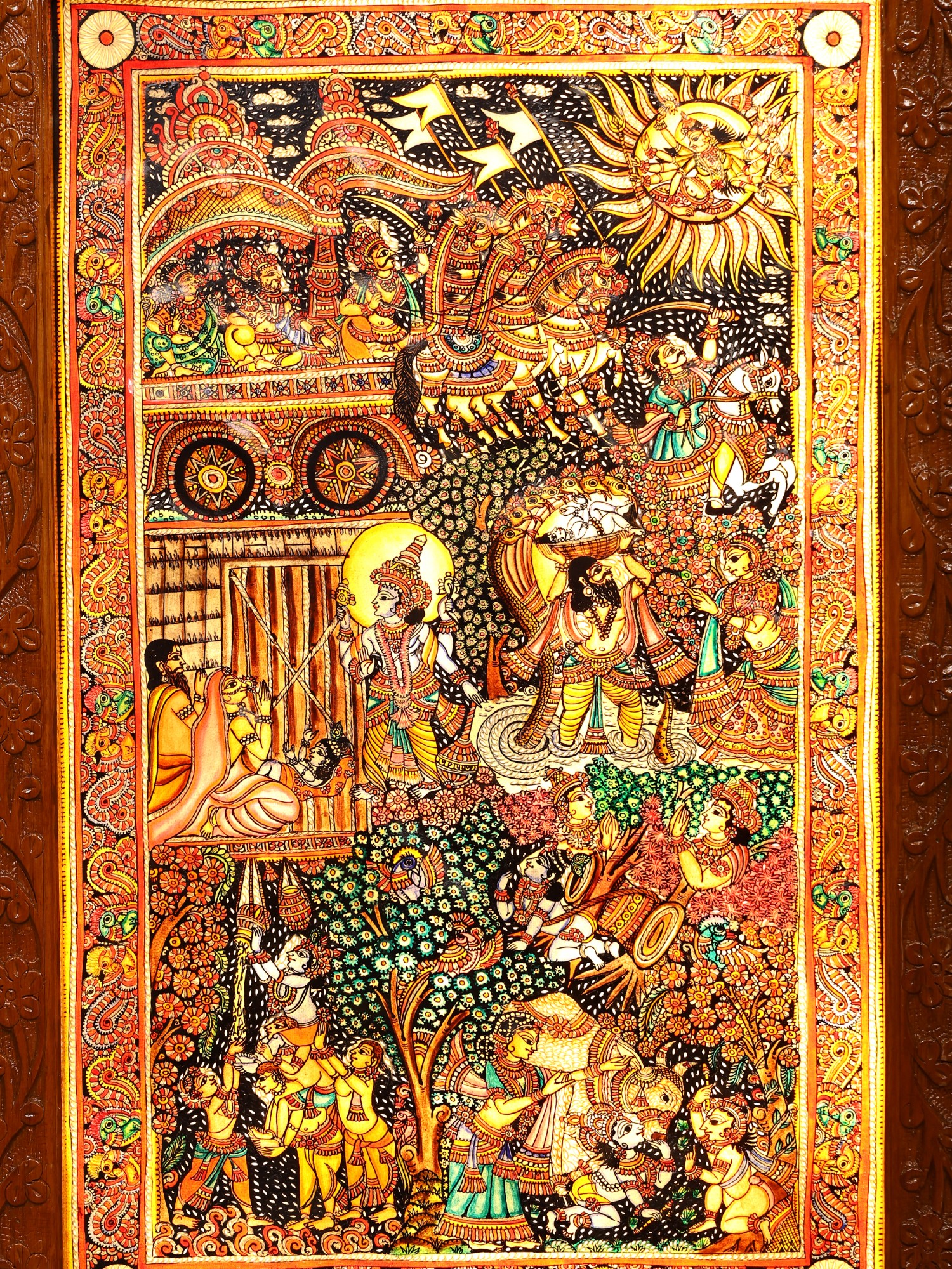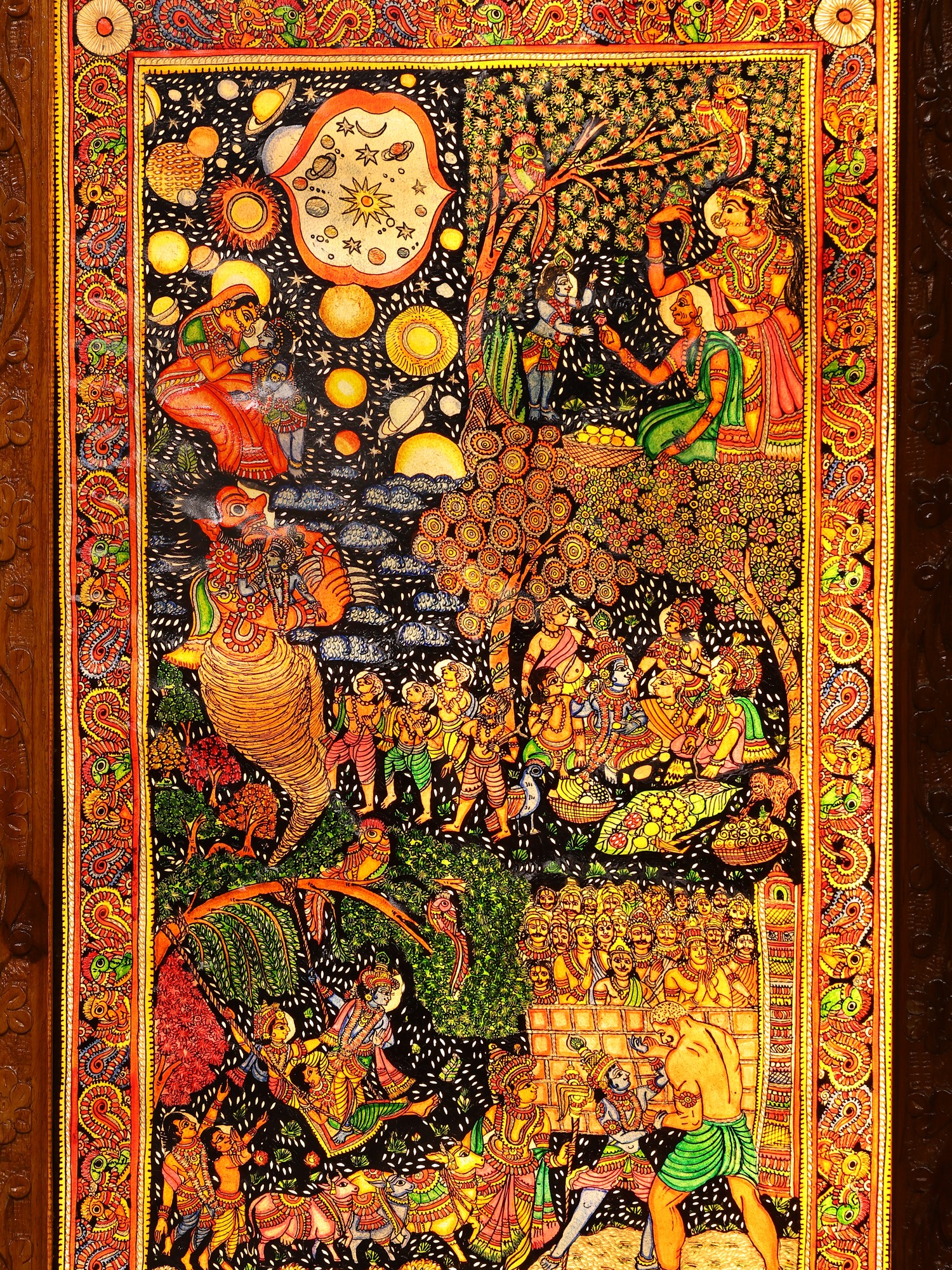Kalamkari Embroidered Shawl with Mughal Emperor Motifs from Amritsar