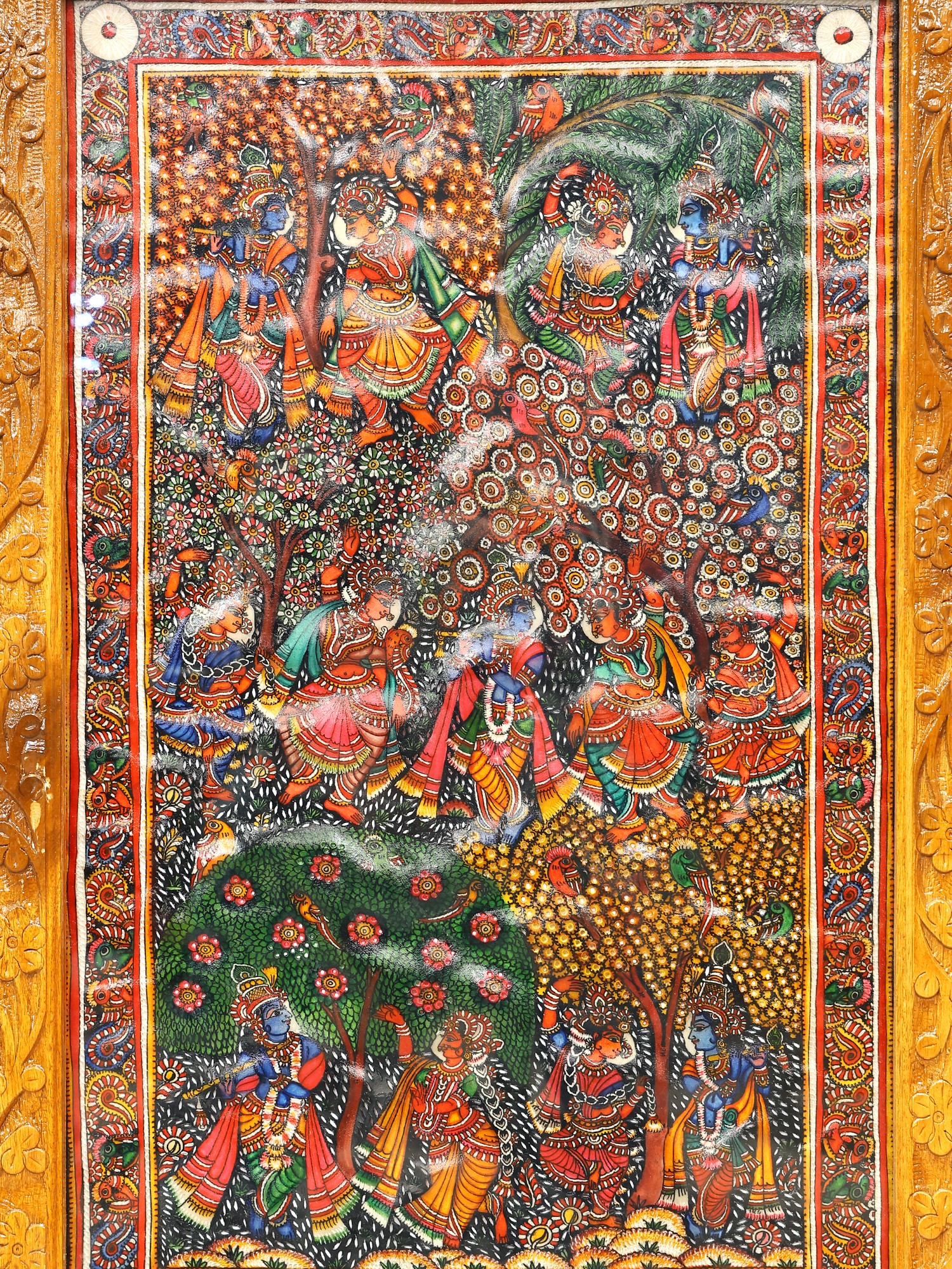 16" Radha Krishna Standing in a Frame | Orissa Stone Statue | Hand Carved