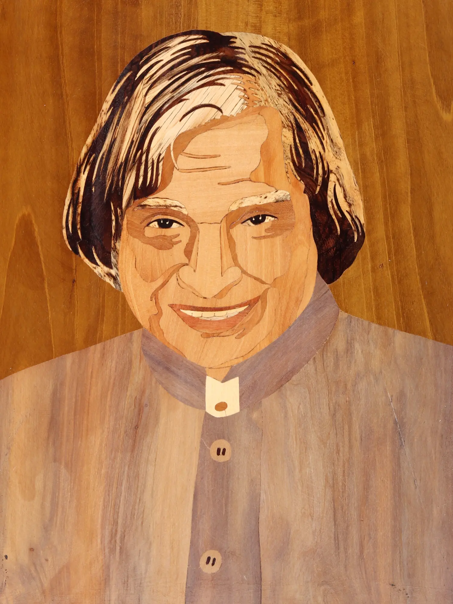 16" APJ Abdul Kalam Portrait For Wall | Natural Color On Wood Panel With Inlay Work
