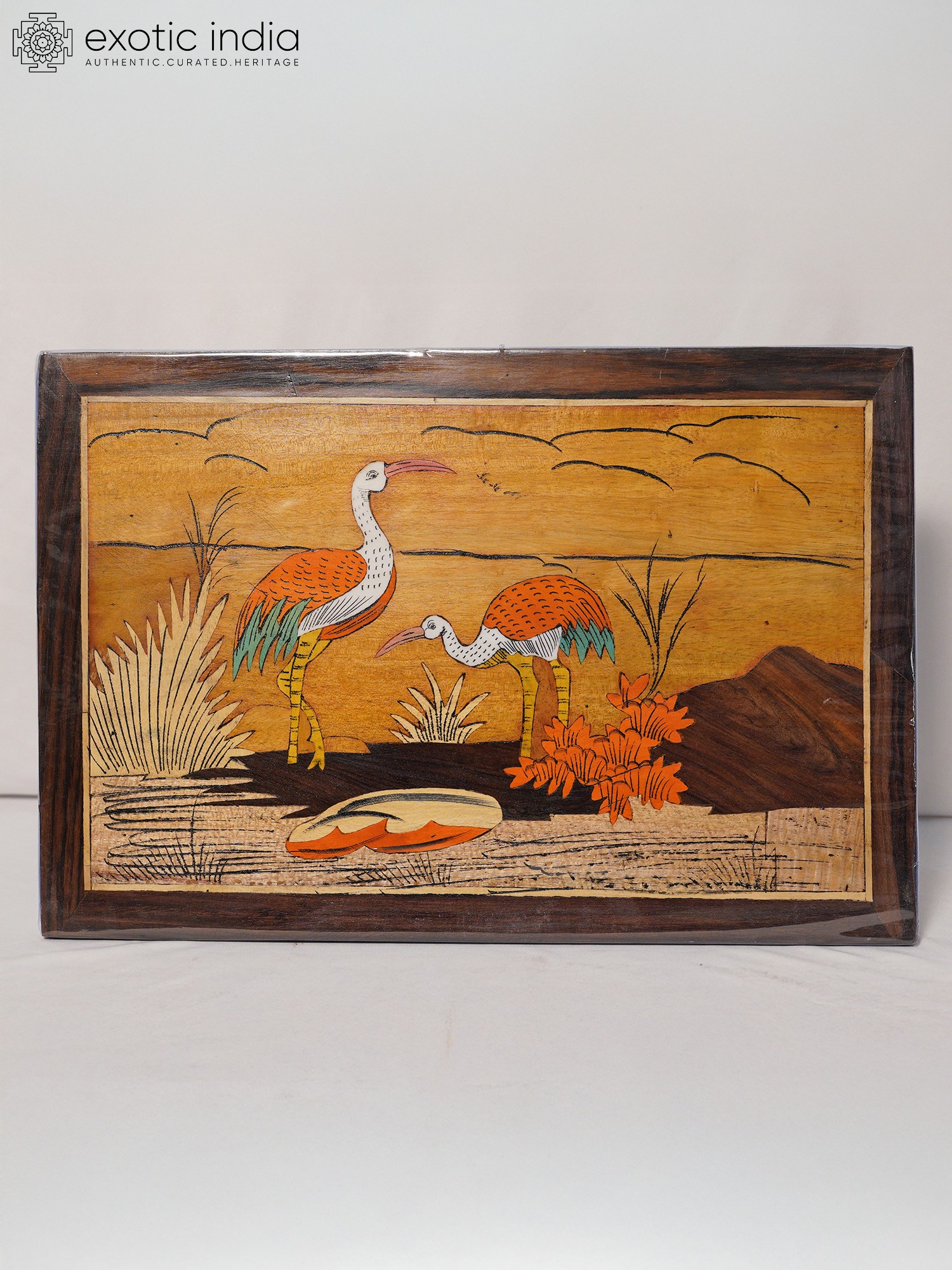 31" Birds Life On Tree | Natural Color On 3D Wood Painting With Inlay Work