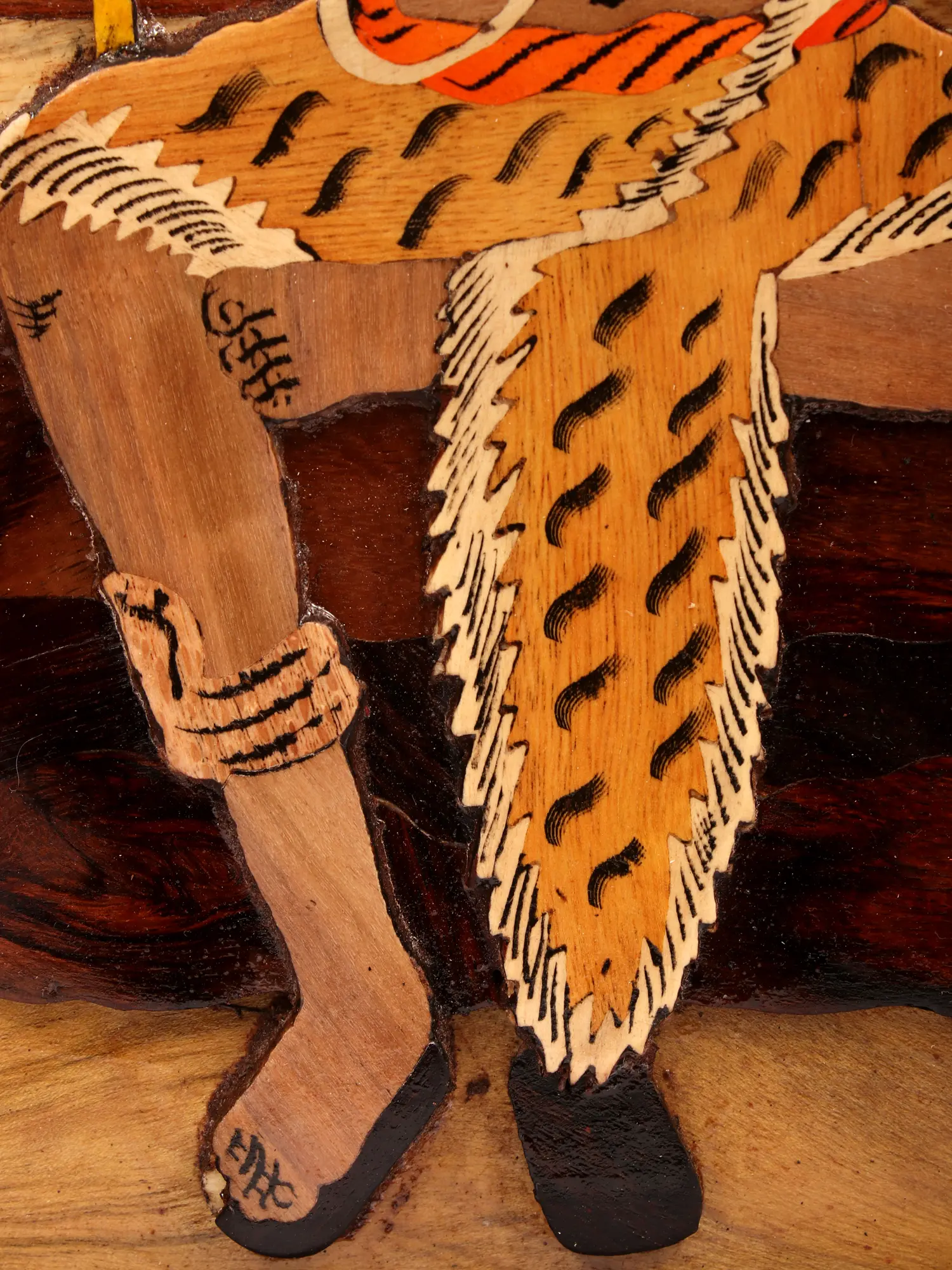 The brown tone of the wood background adds an earthy richness, complementing the spiritual theme. This panel becomes a harmonious fusion of artistic craftsmanship and spiritual symbolism, inviting contemplation and fostering a sense of connection with the divine.