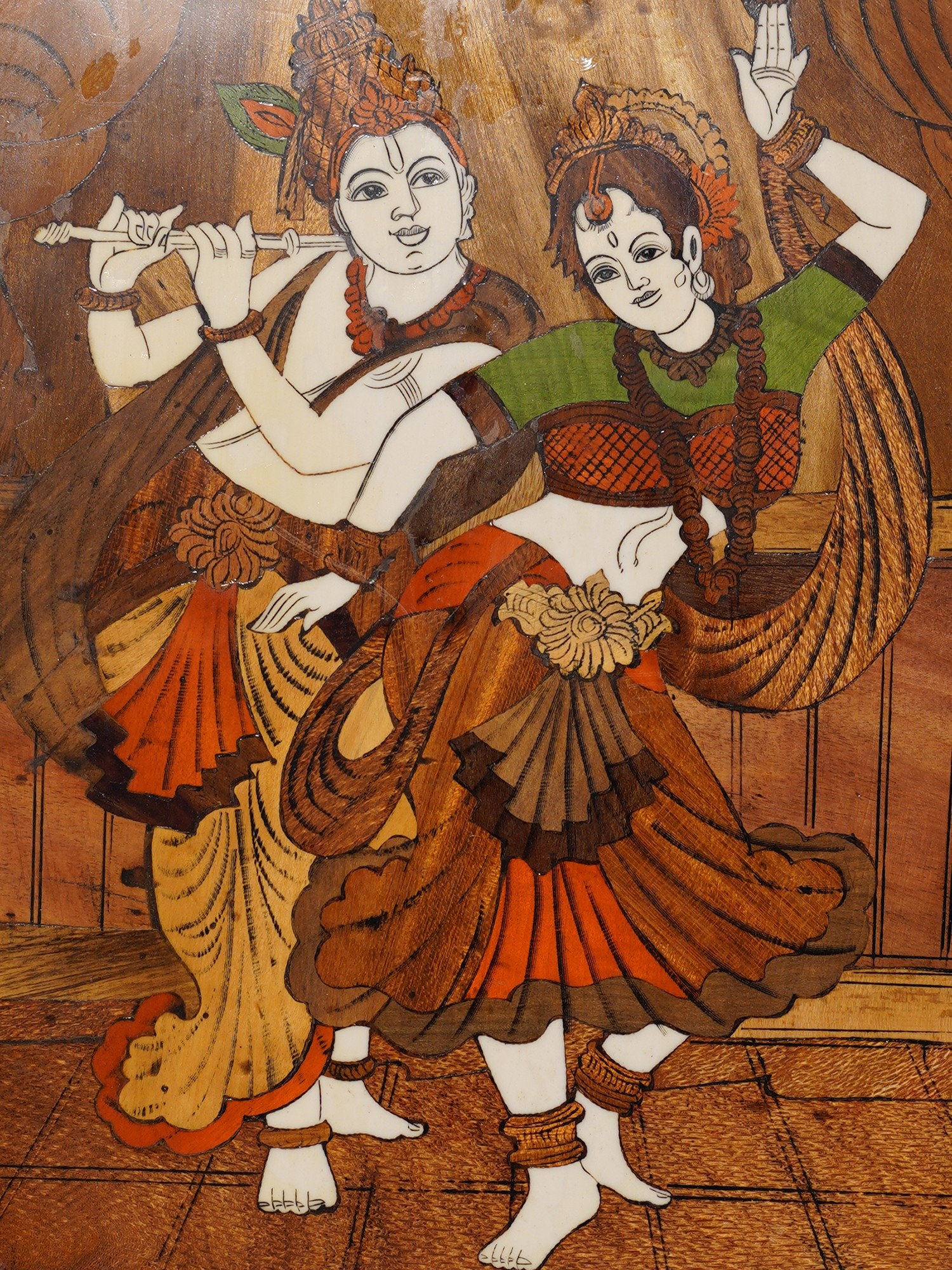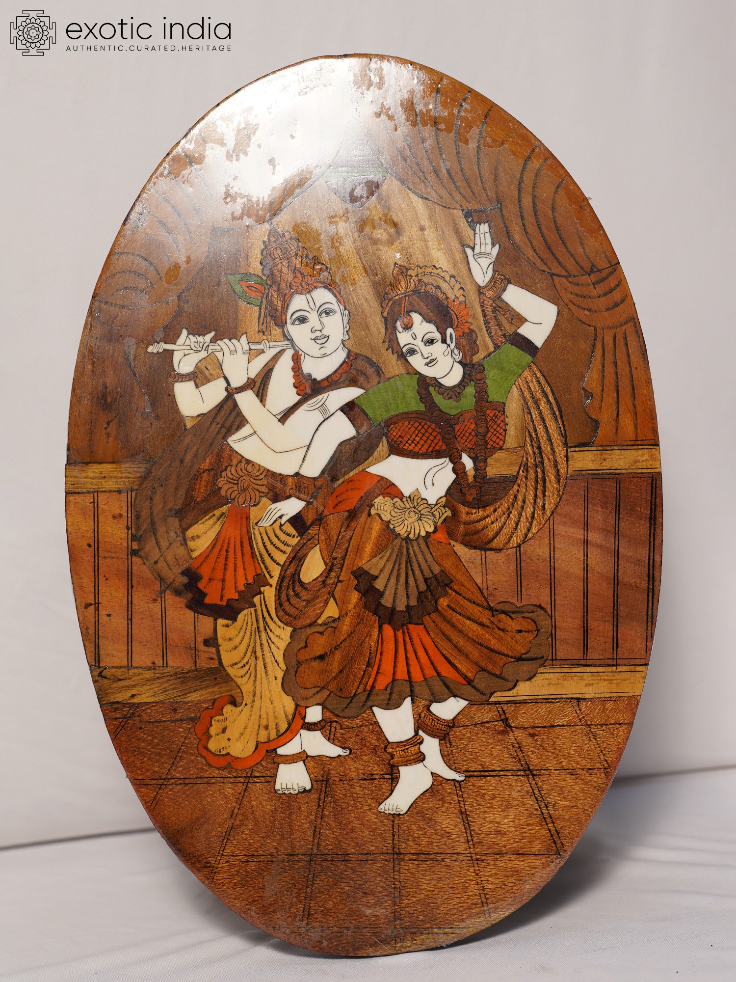 12" Lord Krishna With Radha Rani | Rosewood Panel With Inlay Work