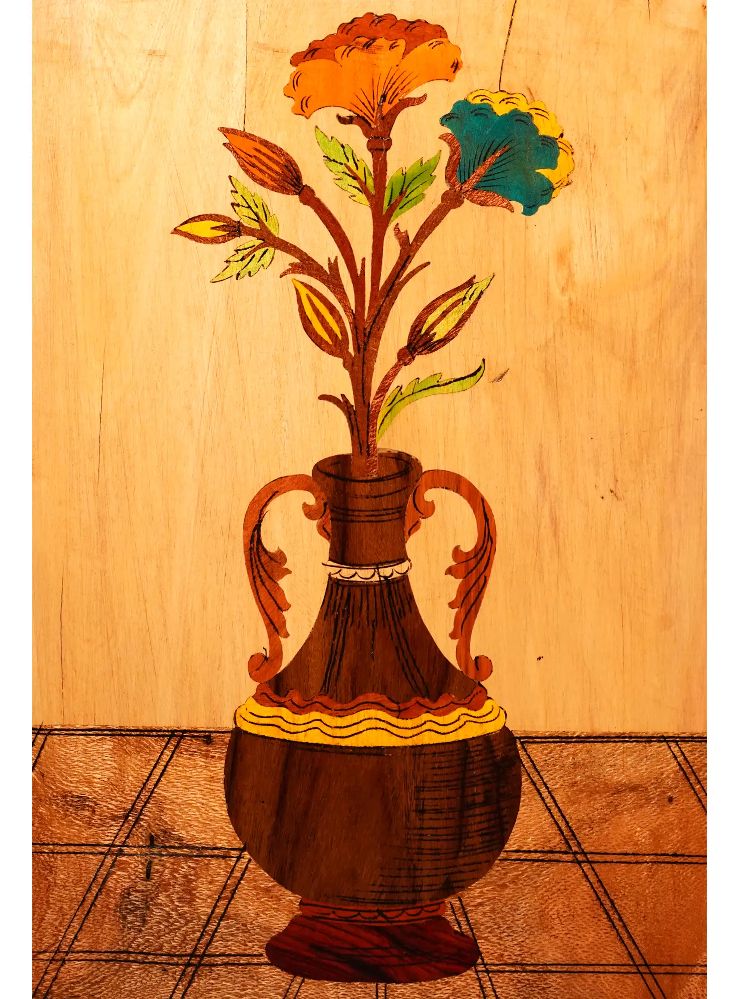 Natural Color On Wood With Inlay Work