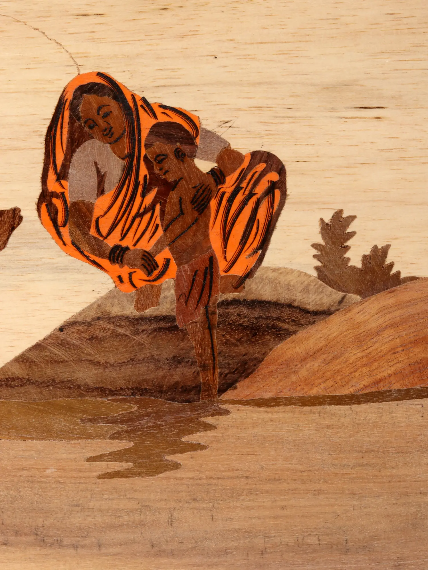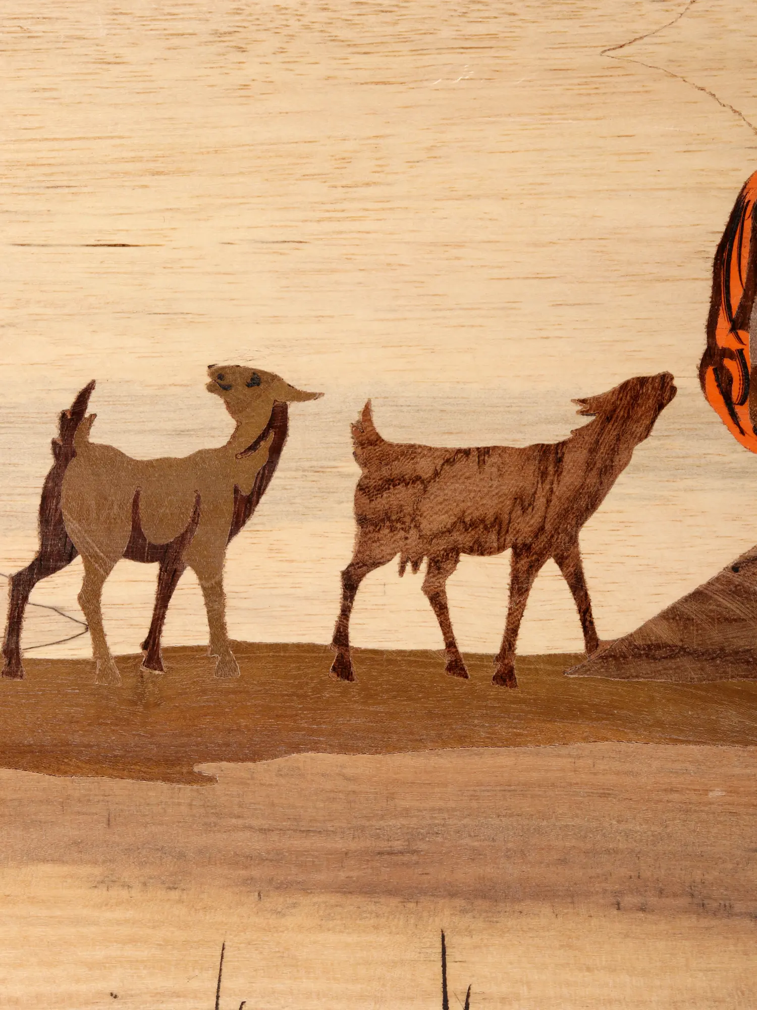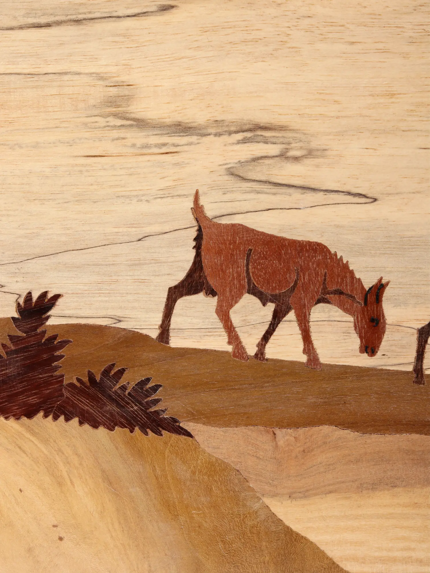 Immerse yourself in the heart of a rural village with this captivating artwork on wood, rendered in natural colours. The use of natural tones creates a sense of authenticity and connection to the land. The artist brings to life a scene of beautiful goats, their forms depicted with simple elegance. This piece celebrates the beauty of everyday life in rural communities and the importance of animals in sustaining those communities.