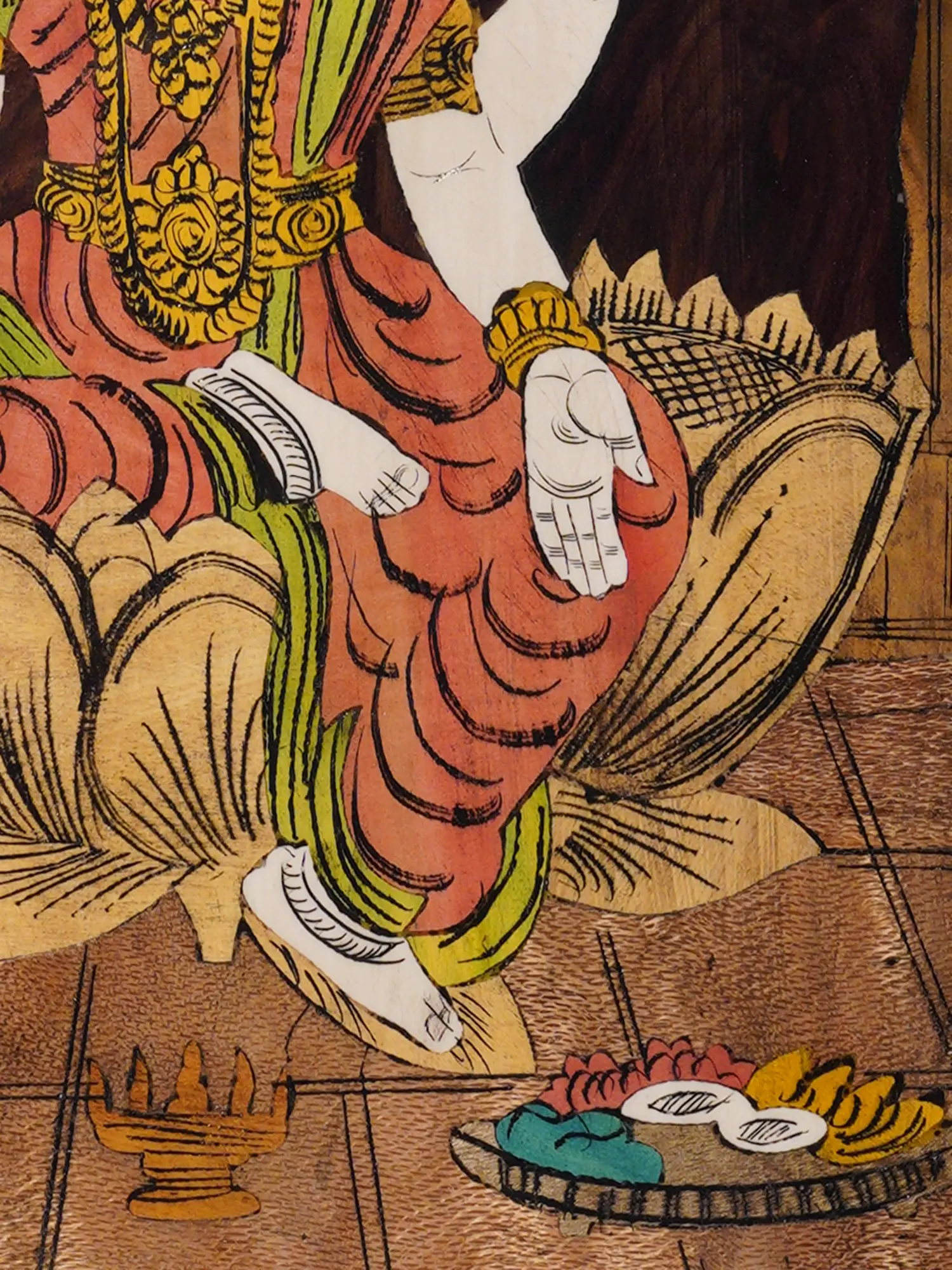 18" Goddess Lakshmi | Wood Panel | Natural Color On Wood Inlay Work