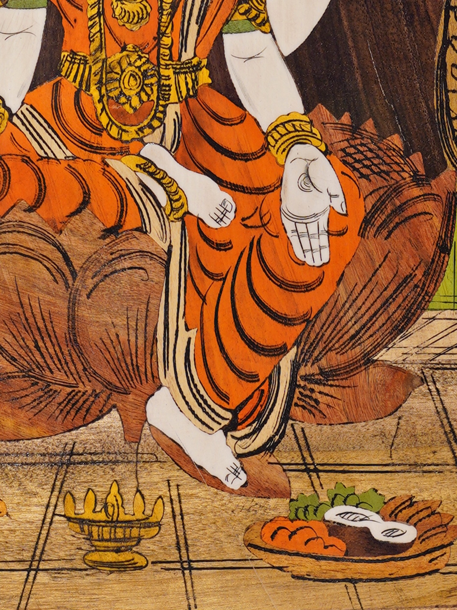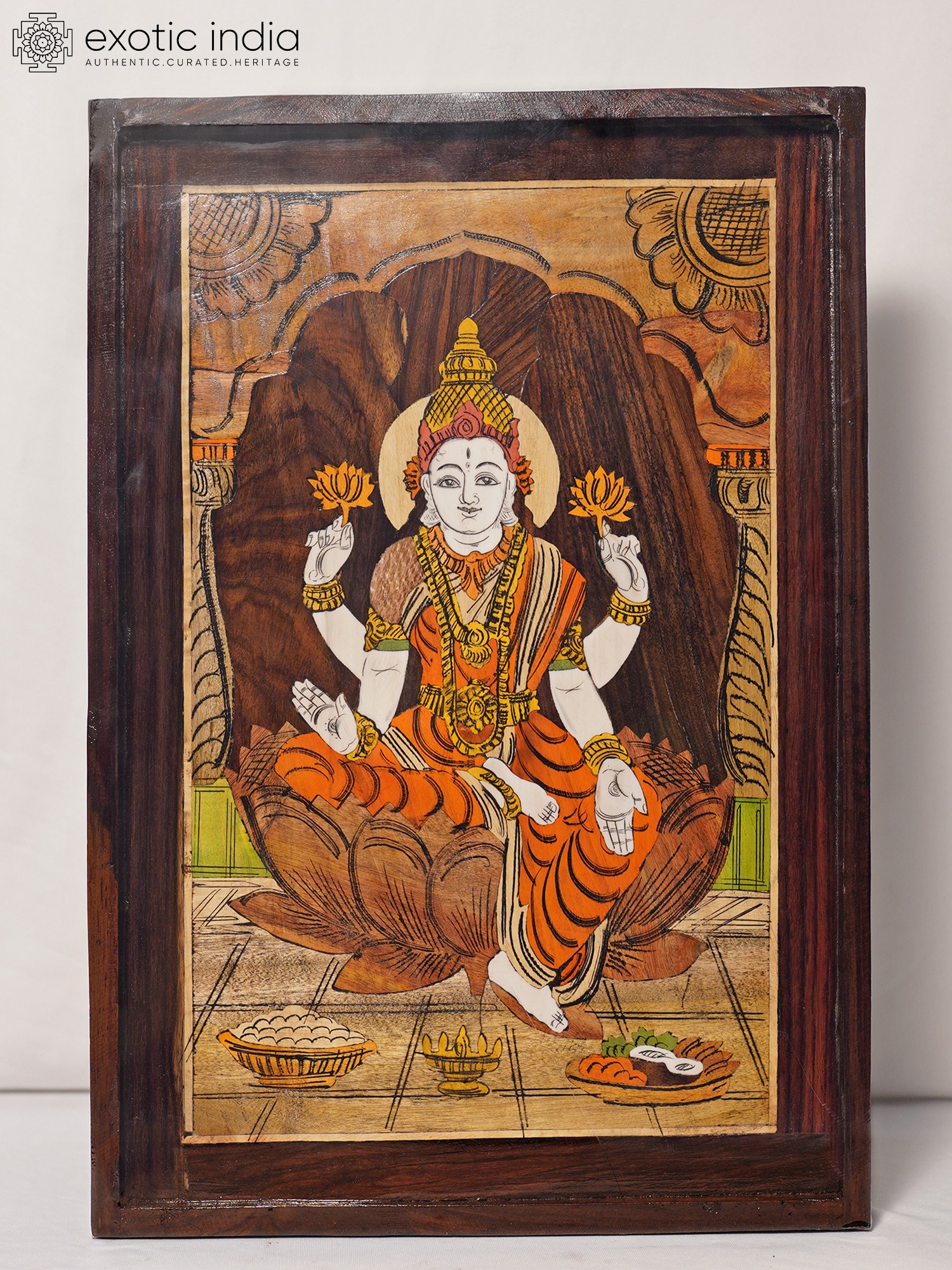 18" Goddess Lakshmi | Wood Panel | Natural Color On Wood Inlay Work