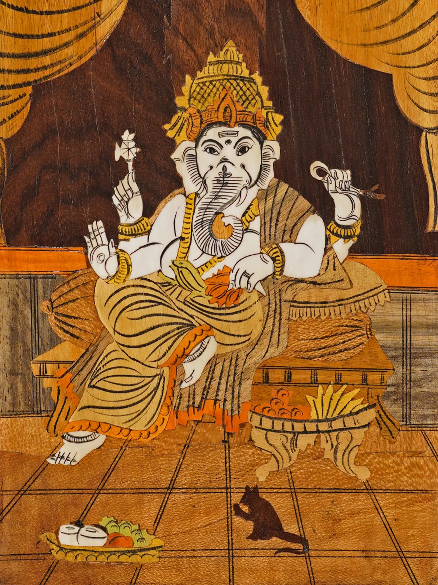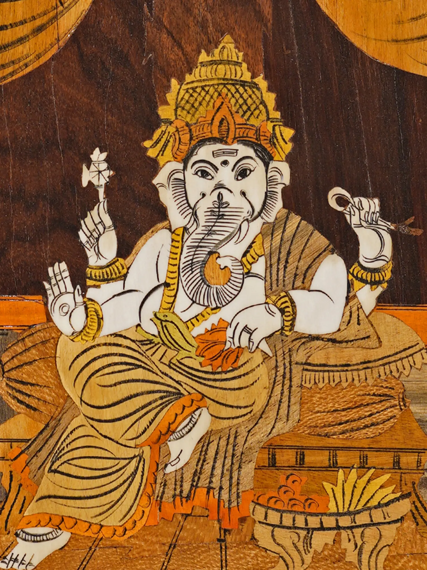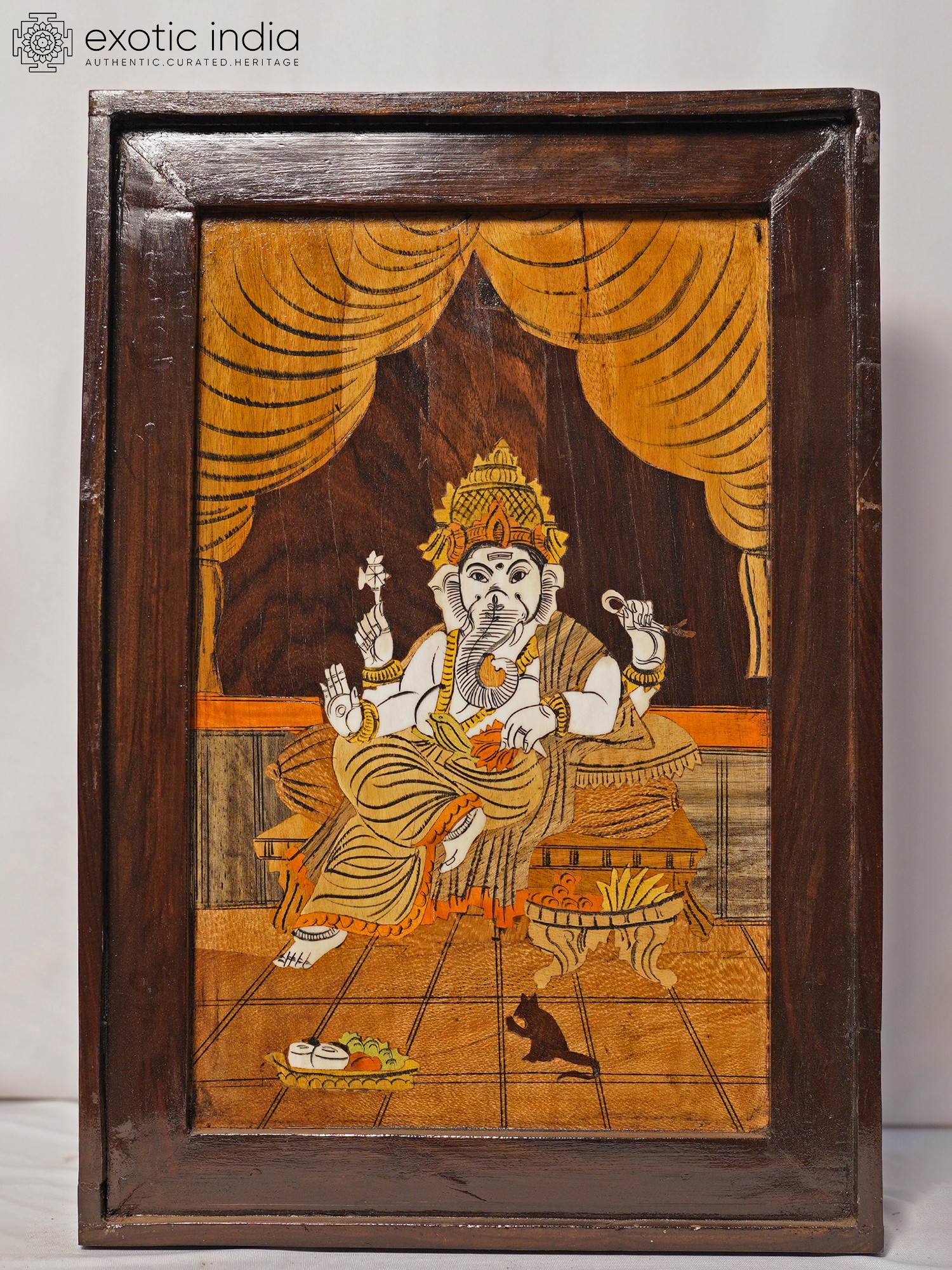 26" Chaturbhuja Lord Ganesha With Trident | Rosewood Panel With Inlay Work