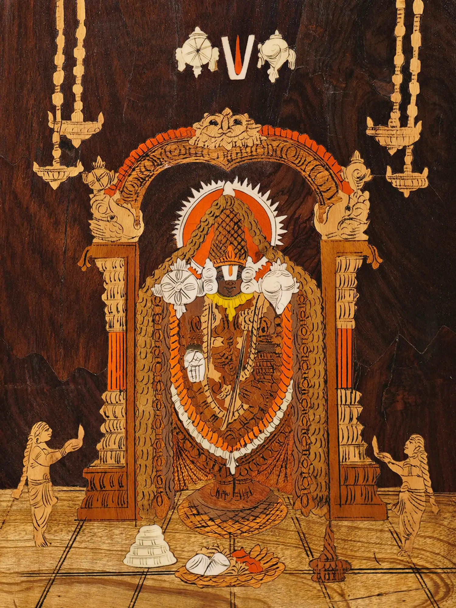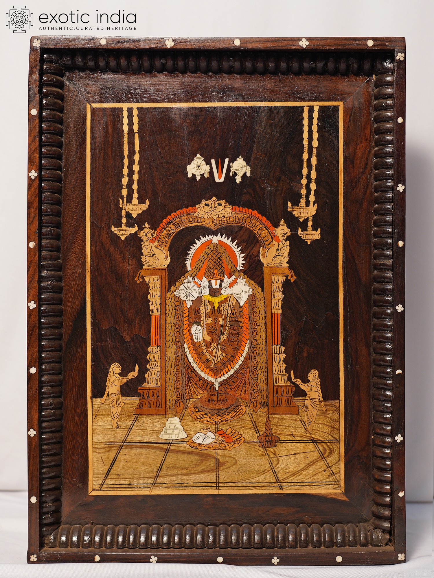 48" Attractive Panel Of Tirupati Balaji | Natural Color On 3D Wood Painting With Inlay Work